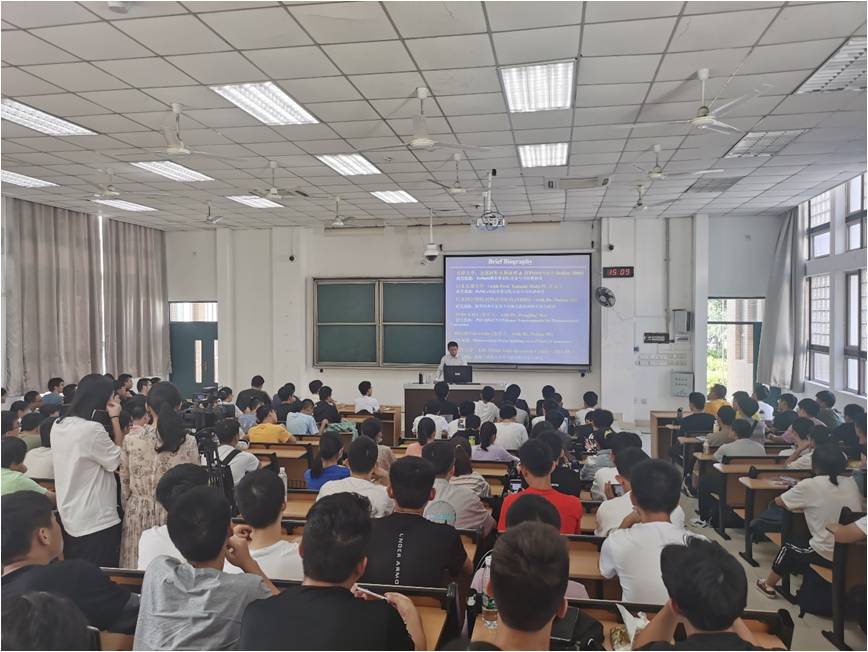 王德法教授以“半导体光催化及其在太阳能化学转换和环境净化中的应用”为题,指出能源和环境已经成为当今世界困扰人类社会可持续发展的两个重要主题,同时也是密切关系到我们国家的战略安全。我国传统化石能源大量消耗、环境恶化等都强烈驱使我们加强能源结构调整,太阳能将逐步加大占据比例,光催化材料通过光化学转换利用太阳能,将大有可为。其次,王教授还深入介绍了光催化机理及用途,联系日常生活的方方面面讲述光催化材料的应用和商业前景。最后王教授还与同学们分享了他个人的成长经历和人生感悟,与同学们亲切互动,寄望同学们不负青春岁月,勇敢追求自己的梦想,用实际行动走向成功。