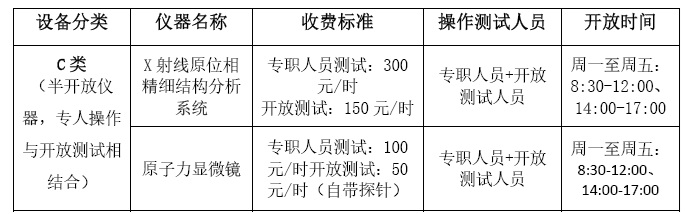 1. 新增X射线原位相精细结构分析系统,并纳入半开放仪器(C类)管理。