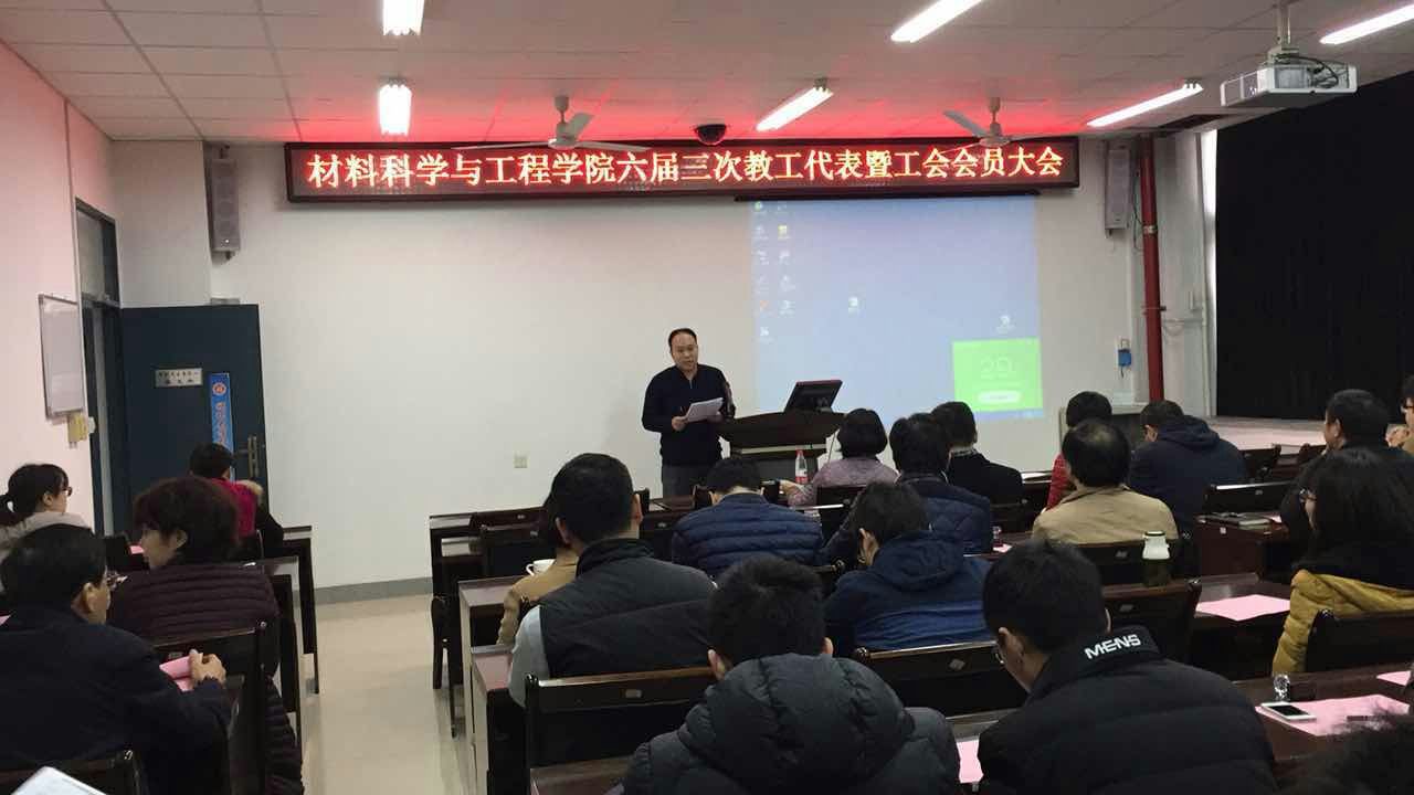 2017年1月12日下午,材料学院第六届第三次教工代表暨工会会员大会在材料科学楼404会议室隆重召开。会议由材料学院副院长张腾同志主持,学院王剑龙副书记致开幕词。会议听取并审议了院长工作报告、院工会工作报告;听取审议院财务收支情况报告和院工会财务收支情况报告;关于成人网站 奖励性绩效工资实施细则的修订。