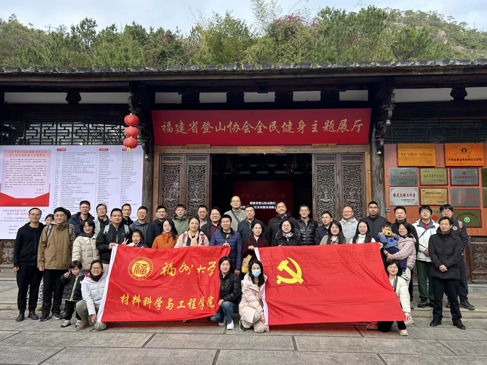教职工们首先来到石鼓别苑开展登山活动。在登山健行、放松身心之后,大家参观了设在石鼓别苑的福建省登山协会全民健身主题展厅。登山协会的专业讲解员系统介绍了福建省全民健身事业的发展历程、山地户外运动的相关知识,以及“健康中国”战略在基层的落实举措。通过实地参观和现场讲解,老师们对科学健身与安全登山有了更深理解,健康生活与全民健身的理念进一步扎根心中。