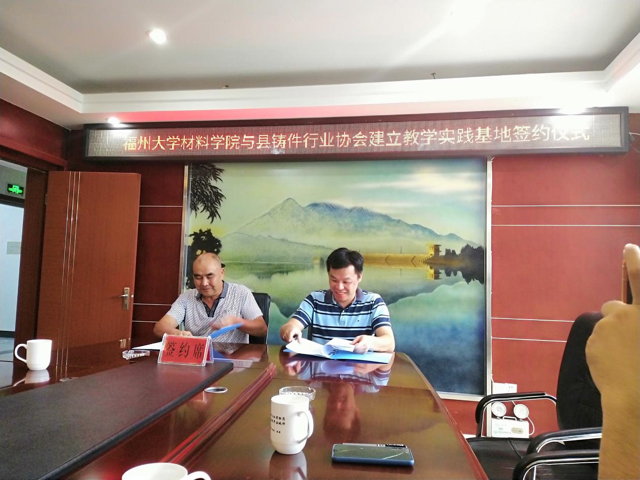 2020年8月27日,学院党委副书记王剑龙、副院长林枞及吴波教授一行三人赴宁德市柘荣县,与县机械铸件行业协会签署教学实践基地共建协议。