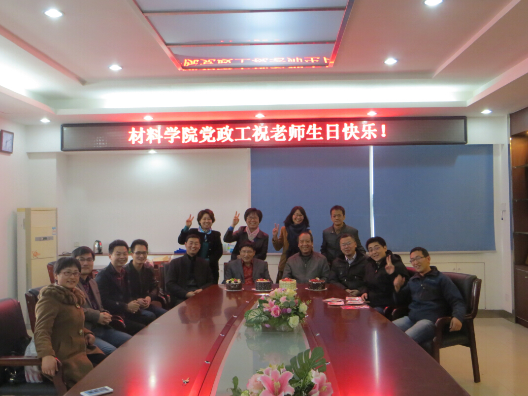 2015年3月26日下午,在悠扬《祝你生日快乐》的音乐声中,材料学院党政工和学院全体教师在嘉锡楼“教工之家”首次为第一季度生日的老师举行集体生日庆祝活动。