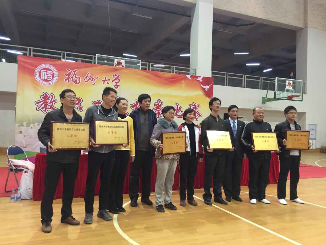 太极拳是我国的国粹,综合了各家拳法之长。为了弘扬国粹,2016年1月7日下午,由成人网站 工会主办的“成人网站 教职工太极拳比赛”在风雨操场拉开帷幕。全校共有21支队伍参赛。成人网站 30名教师组成的太极拳比赛队伍在优美柔和的《多情竹》音乐中,尽量展现太极拳阴阳相生相克、刚柔并济的精髓。经过近三个小时的比赛,共决出一等奖2名,二等奖4名,三等奖6名。成人网站 代表队获得三等奖。