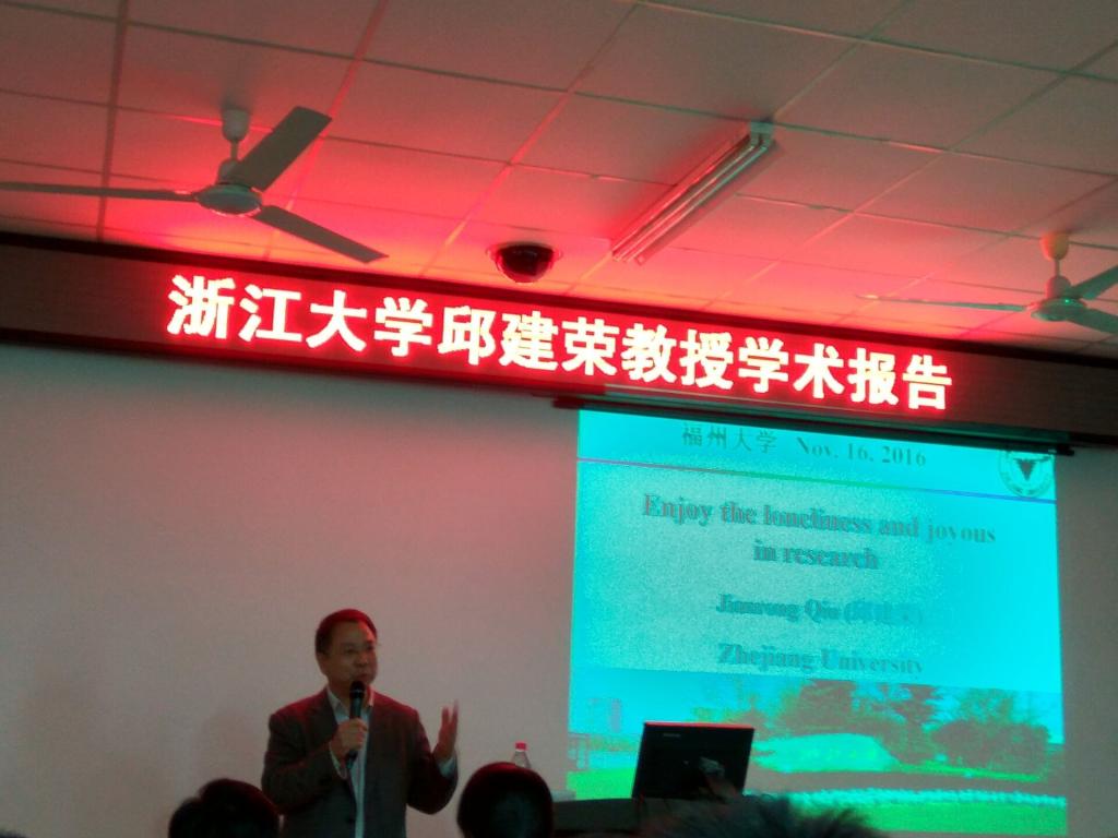11月16日上午,浙江大学长江学者特聘教授邱建荣为成人网站 师生带来一场题为“享受科研的孤独和快乐----和同学们分享一些体会和心得”的精彩报告。