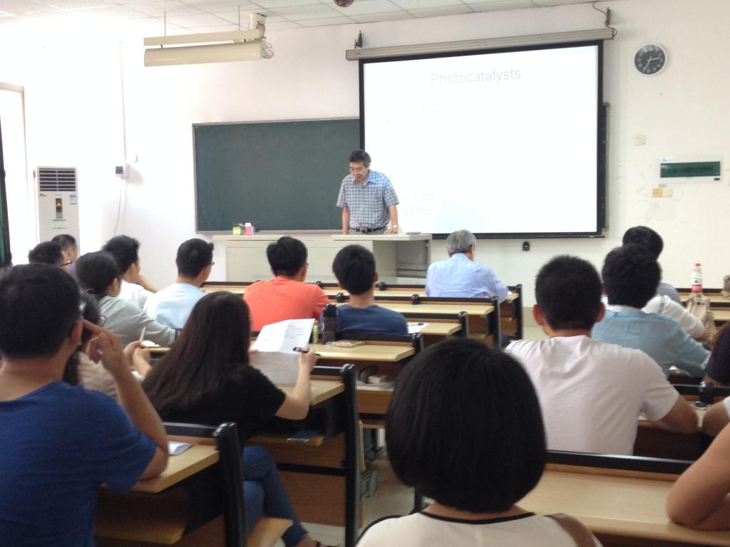陈郁文教授在教学楼西2-205教室做了题为“Preparation of TiO2 functional Thin Film and Its Application”的学术报告。报告中主要讲述了TiO2颗粒作为催化剂的发展概况,概述了TiO2功能薄膜的制备,喷涂以及产品的应用。陈教授深入浅出的讲述使同学们对TiO2粉末催化这一领域有了初步的了解。此外,陈郁文教授还对台湾中央大学进行了简要的介绍,并就赴台学习与师生进行了热烈交流,并对联合培养等相关问题进行了解答,欢迎老师同学们赴台交流。