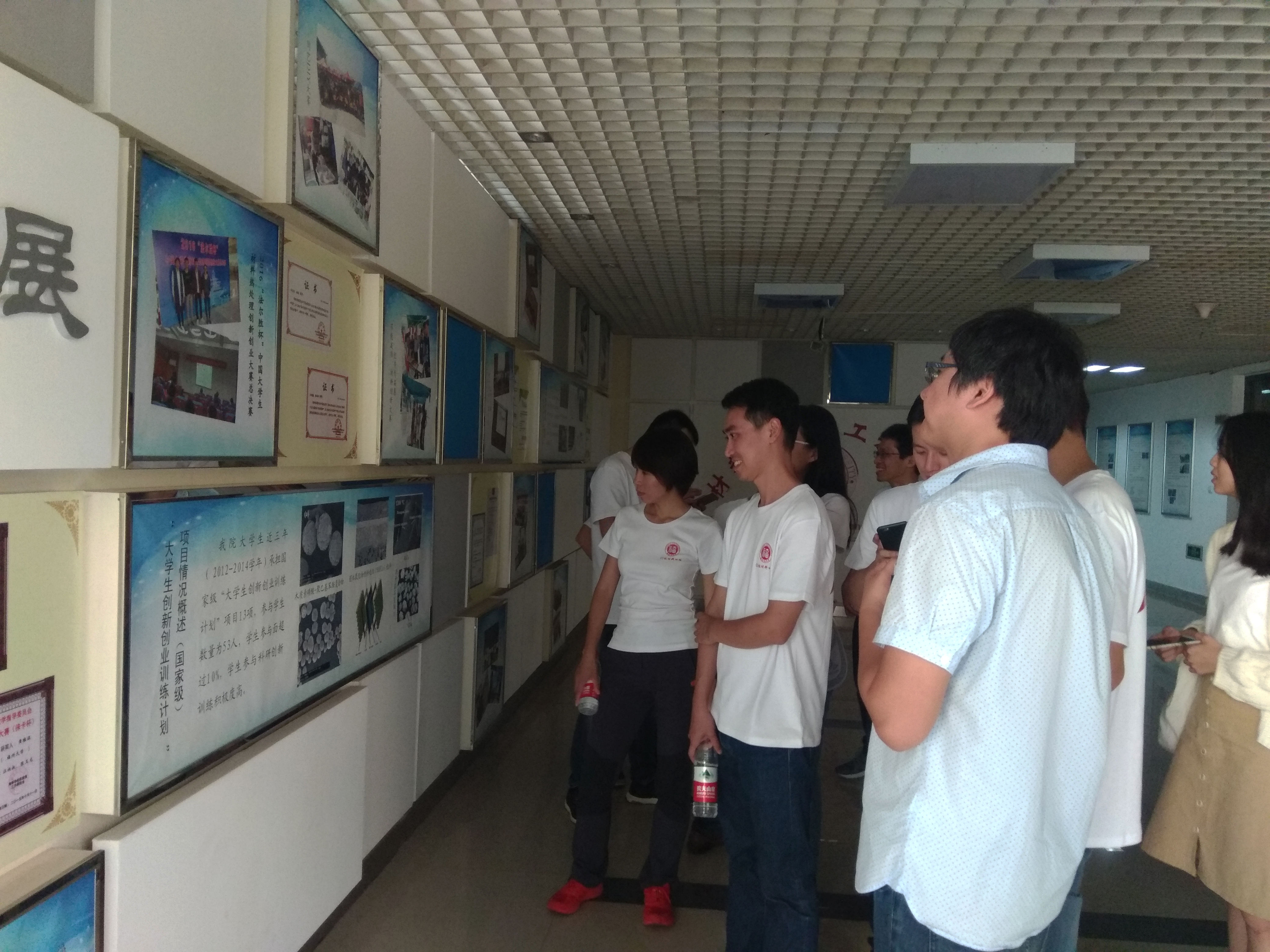 沿着熟悉而又有点陌生的风景线环游校园,看着路边经无数台风和暴雨而仍然在野蛮生长的树,过去和现在的时空仿佛有了交错。当初幼弱的小树苗如今俨然高大伟岸,枝繁叶茂,它们用无微不至的关怀呵护着下一代的树苗的成长。十年间,学校多出了许多的风景,这些地方也留下了他们的影子。材子们最惦念的当然是母校材料水平的发展。短暂的参观校园之后,便在材料学院的楼下集合。望着崭新的材料楼,他们不禁感叹起岁月如流水,同时也为我们这一代能用上更先进的设备来做研究学习感到欣慰。材料楼的一层是福大最近几年关于材料的喜人进展,老学长学姐们一边欣赏着,一边合影留念。谈笑间,他们充满了对自己身为材子之家中的一员的自豪。