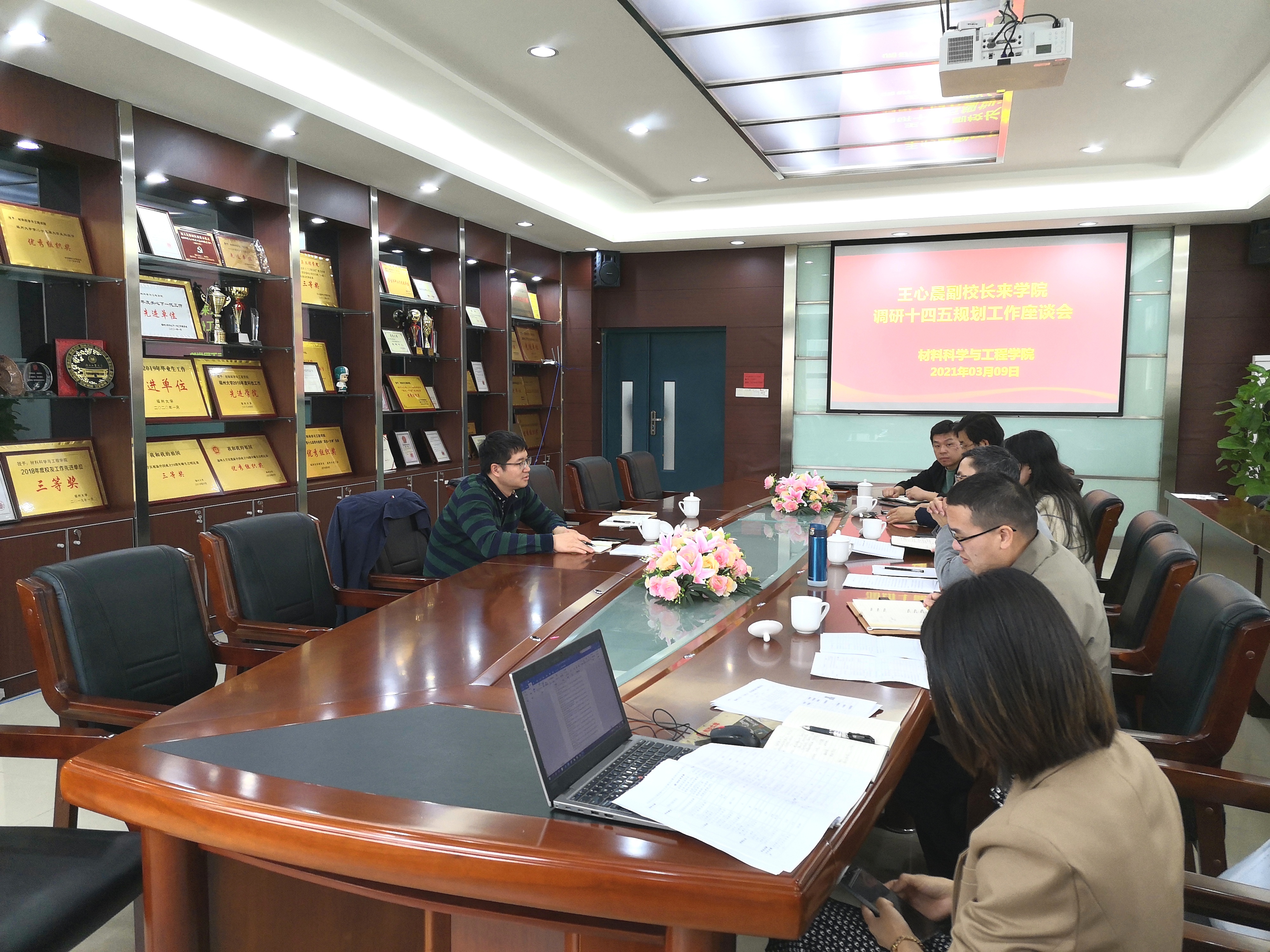 近日,王心晨副校长来材料学院调研指导工作,材料学院党委领导班子成员出席会议。