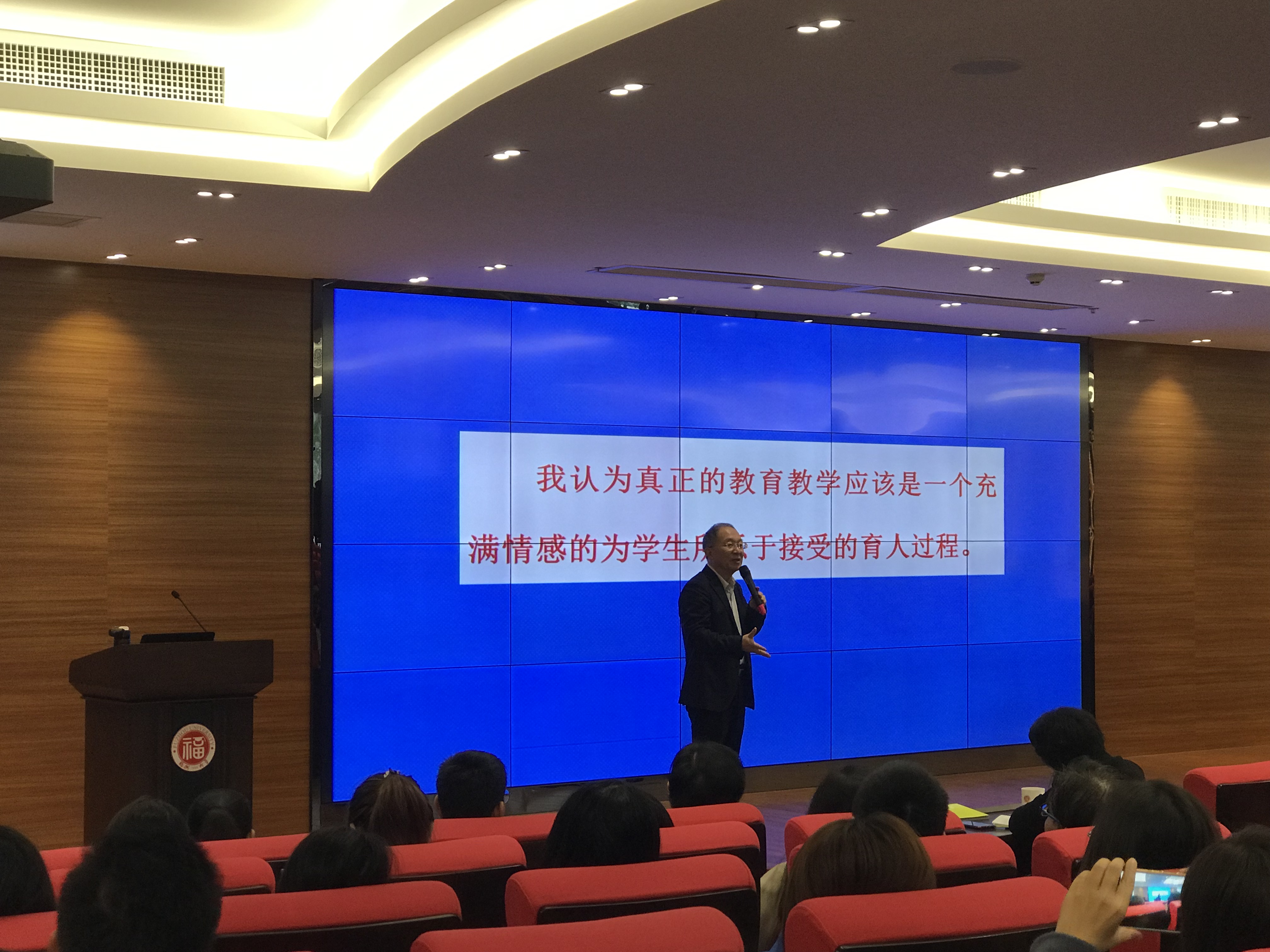 半天的讲座时间感觉过得太快,笑声和掌声此起披伏,整个课堂气氛活跃,一则则妙趣横生的事例栩栩如生……众教师不约而同的感受那就是:受益匪浅,意犹未尽。整个讲座中,卢教授用了大量生动、鲜活的事例,加以铿锵有力的语调向我们讲述了教育工作的重要性,的确为当下时效性不高的教育工作为我们打下了一针强心针,促进教师在今后的教学活动中加强学生情知和谐发展、加强立德树人于教学实践之中提供理论与实践借鉴。