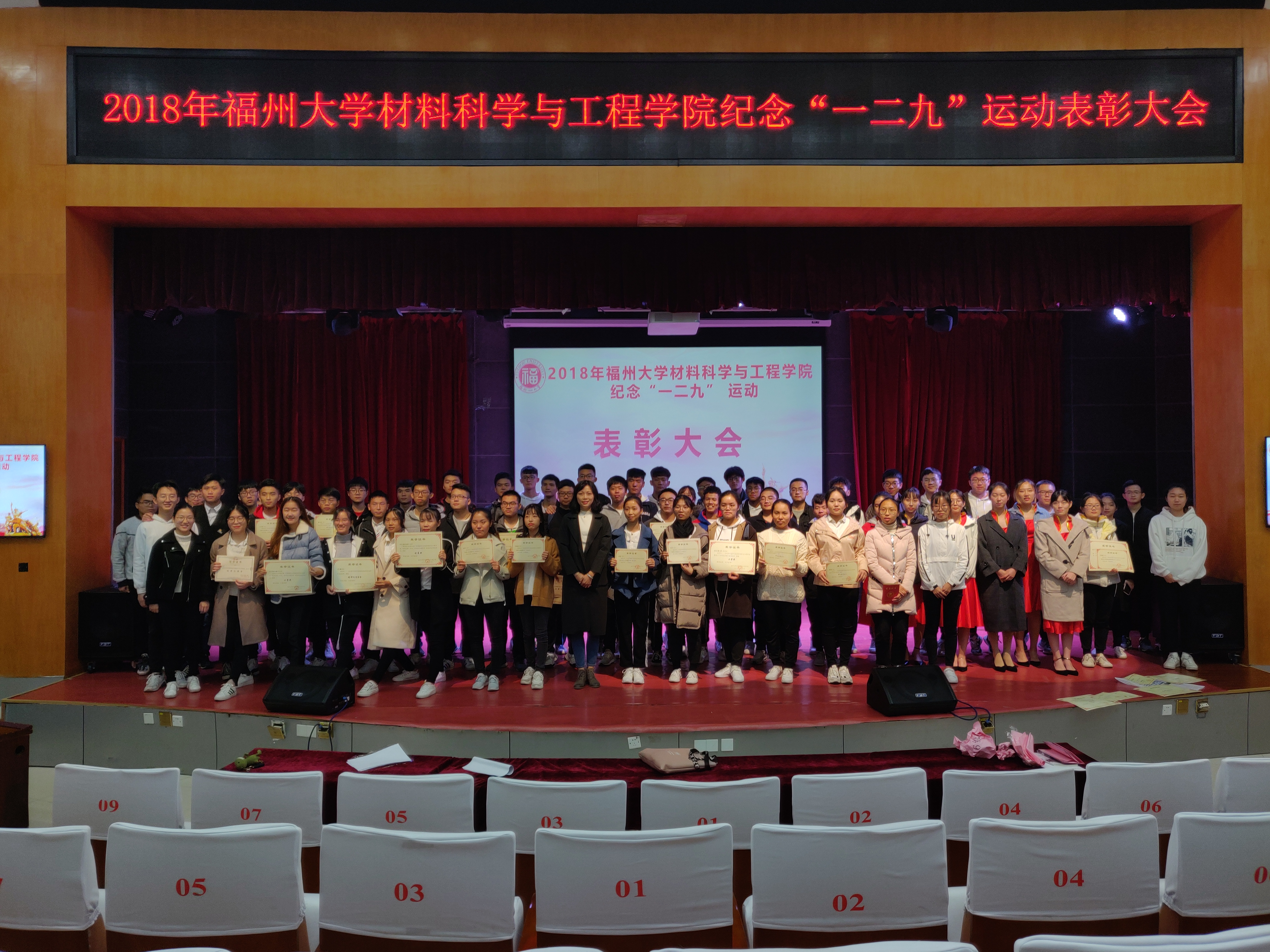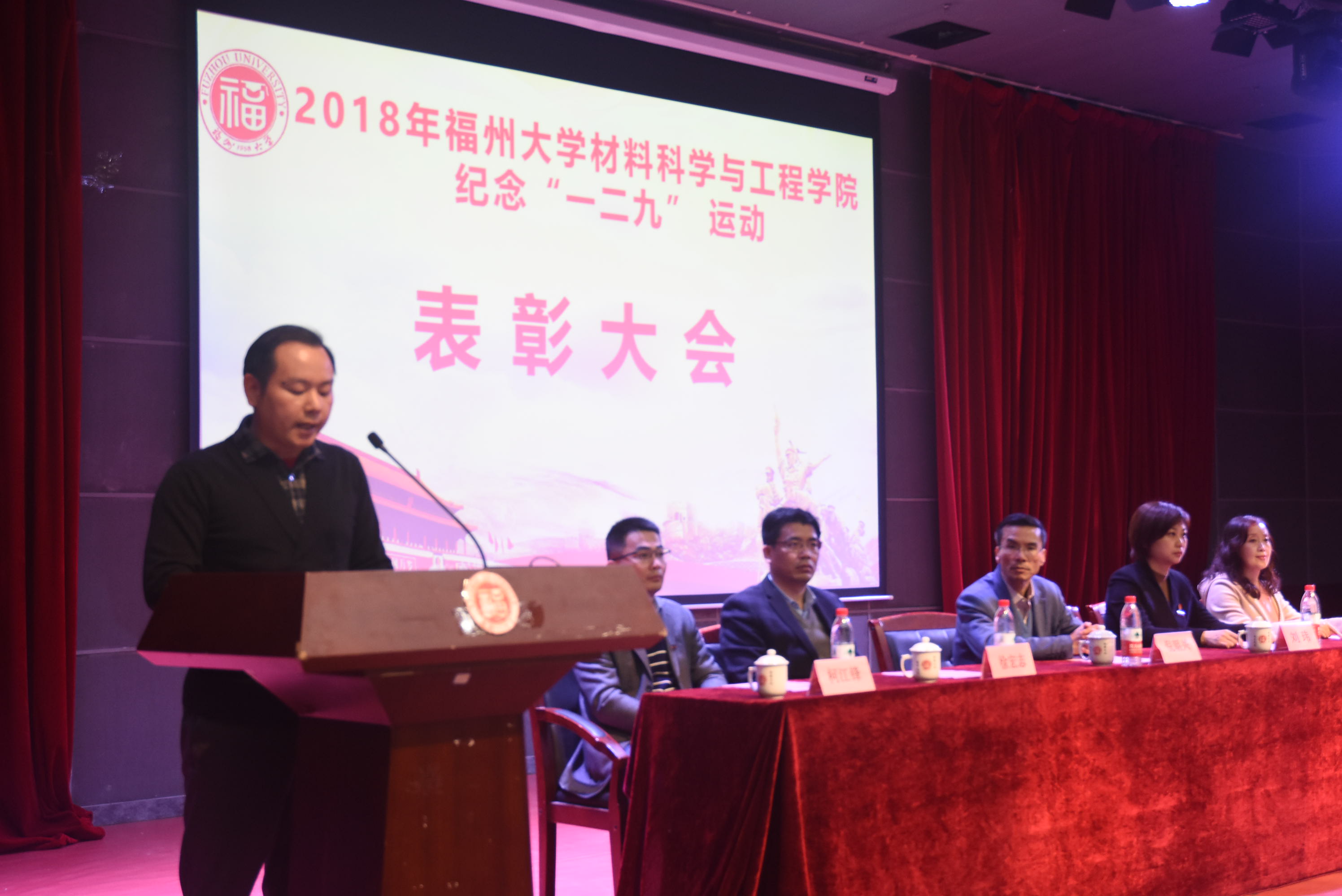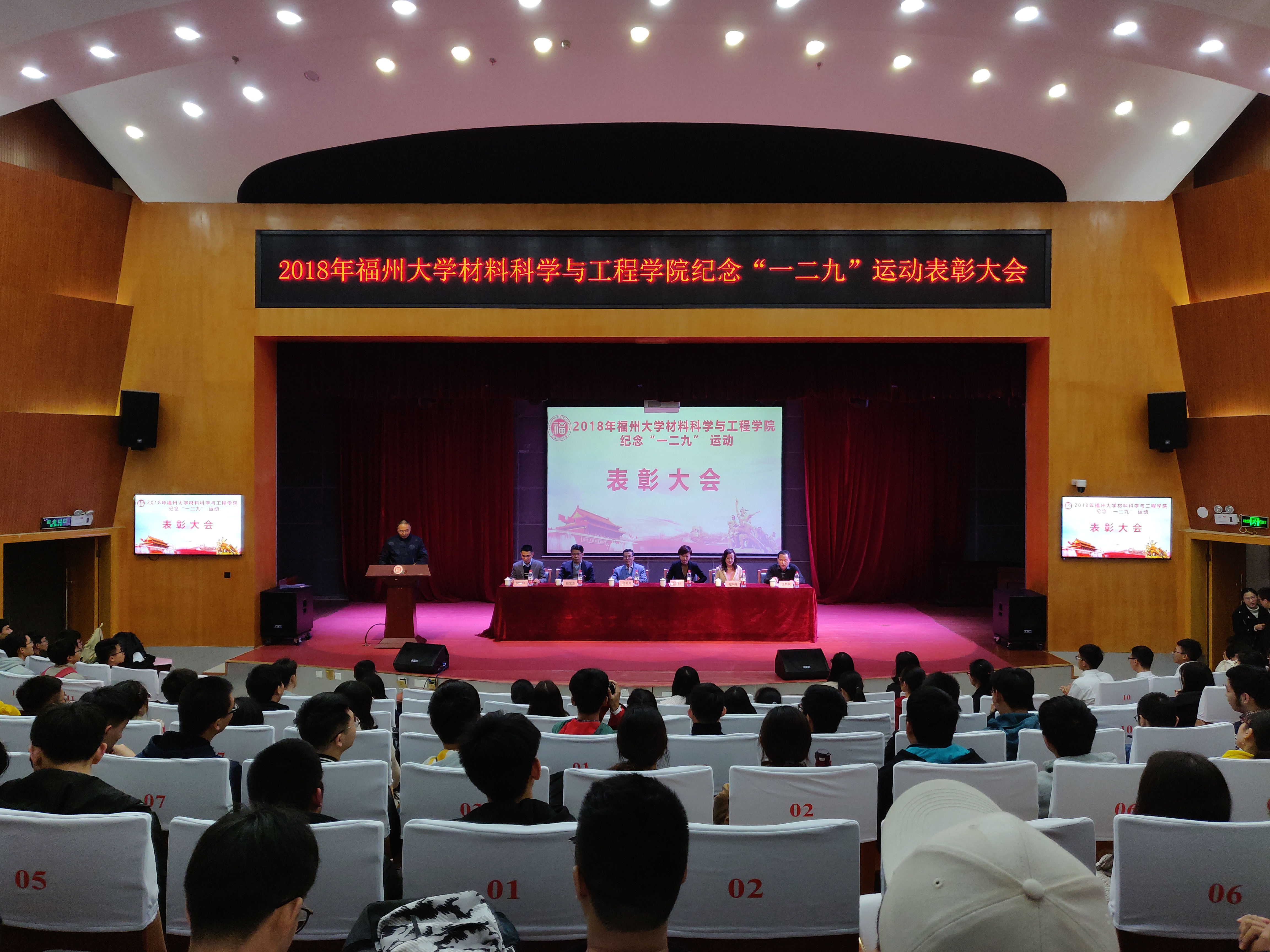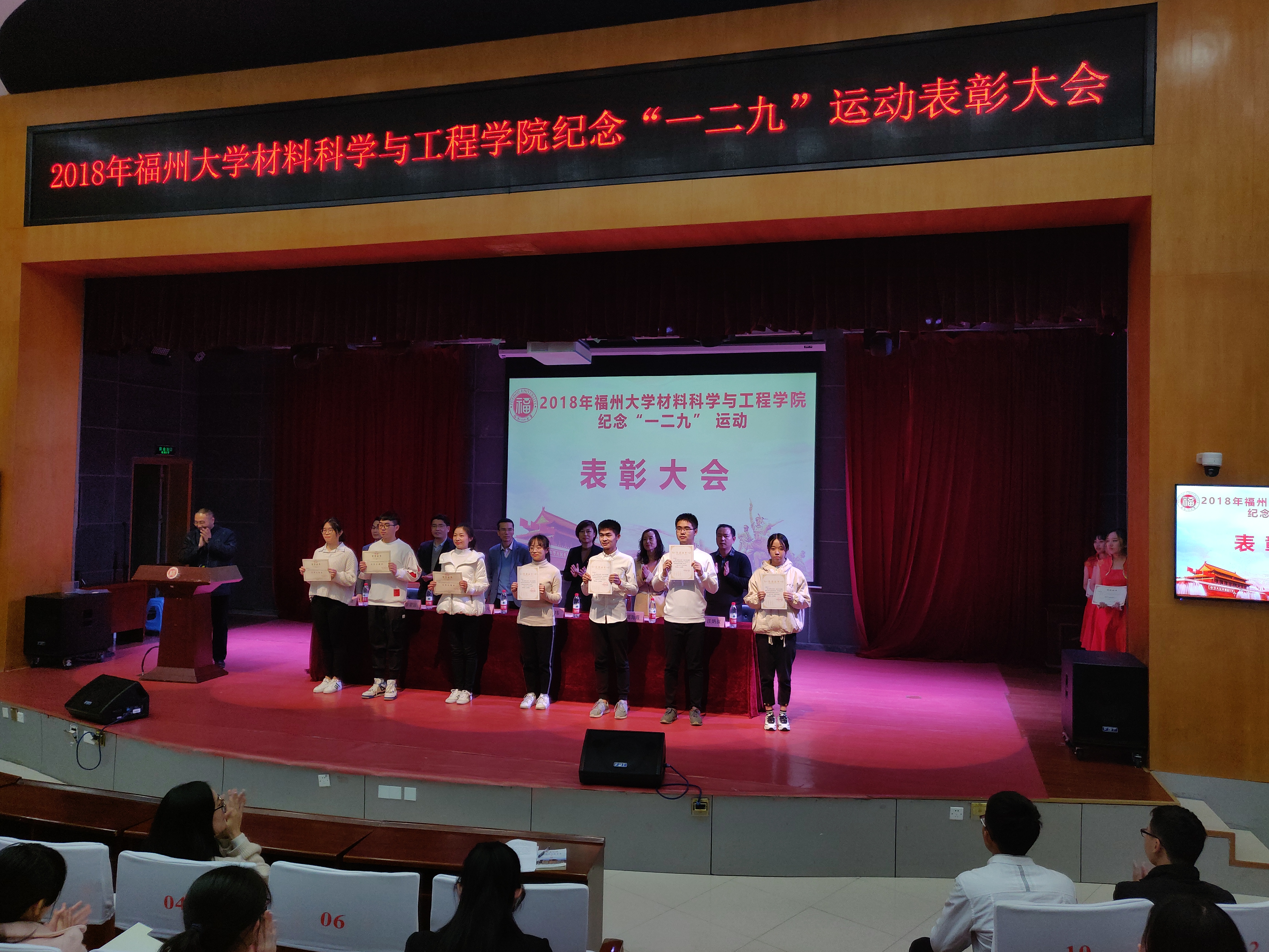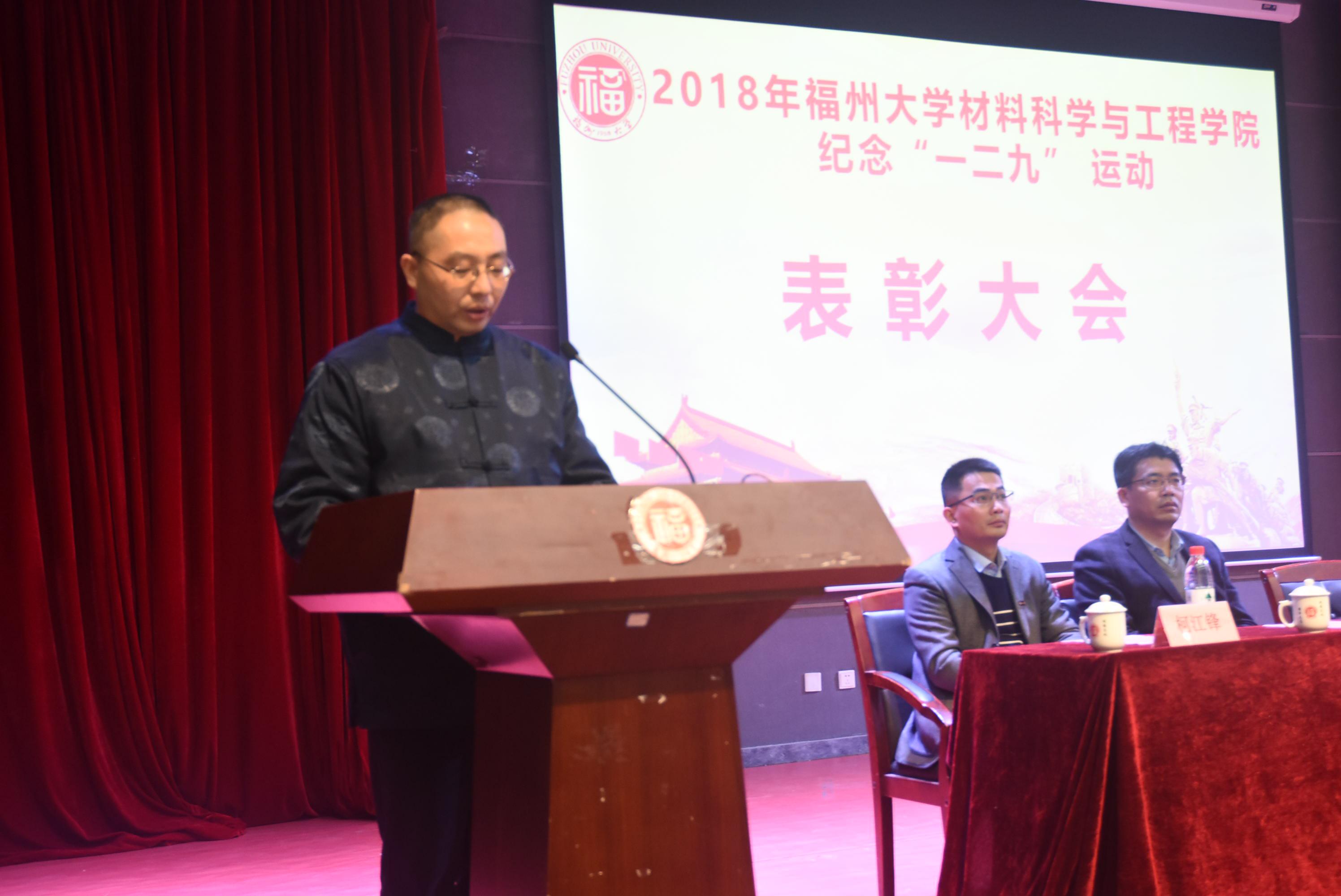 为纪念一二九运动83周年,同时表彰过去一年来成人网站 的先进集体和优秀个人,12月10日,成人网站 于图书馆明德厅举行了纪念“一二九”运动83周年暨表彰大会。本次大会由学院党委副书记王剑龙老师主持,院党委倪朝兴书记、校团委刘玮副书记、校学生工作部(处)徐宏志副处长、校党委宣传部葛海霞副部长、校党委组织部柯江锋科长、院长助理汪炳叔老师、院团委书记黄真老师、辅导员王怡老师、辅导员王文栋老师和17级、18级本科生参加会议。