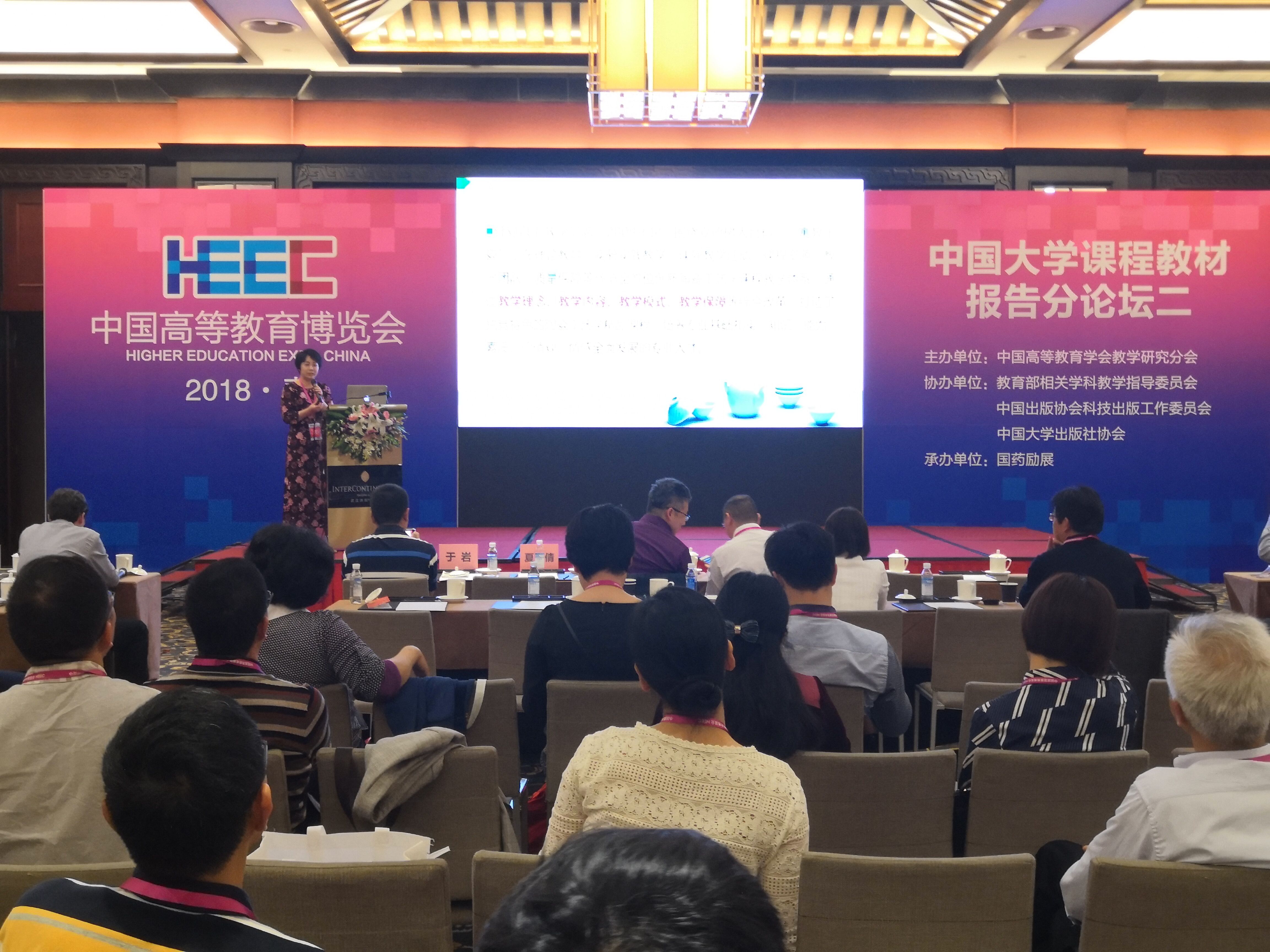 2018年4月26日—27日,由中国高等教育学会教学研究分会主办的首届“中国大学课程教材报告论坛”在武汉国际博览中心举办。论坛是中国高等教育博览会(2018·春)的组成部分,由中国出版协会科技出版工作委员会、中国大学出版社协会等机构协办。论坛以“一流本科课程教材建设的创新与实践”为主题,中国高等教育学会副会长张大良、中国高等教育学会教学研究分会理事长杨祥等嘉宾出席,来自全国高等教育领域的多名专家、学者和代表参加了会议。成人网站 于岩教授应邀作了题为《寓教于瓷,打造精品,创新陶瓷工艺学课程教学体系》分会场专题报告。