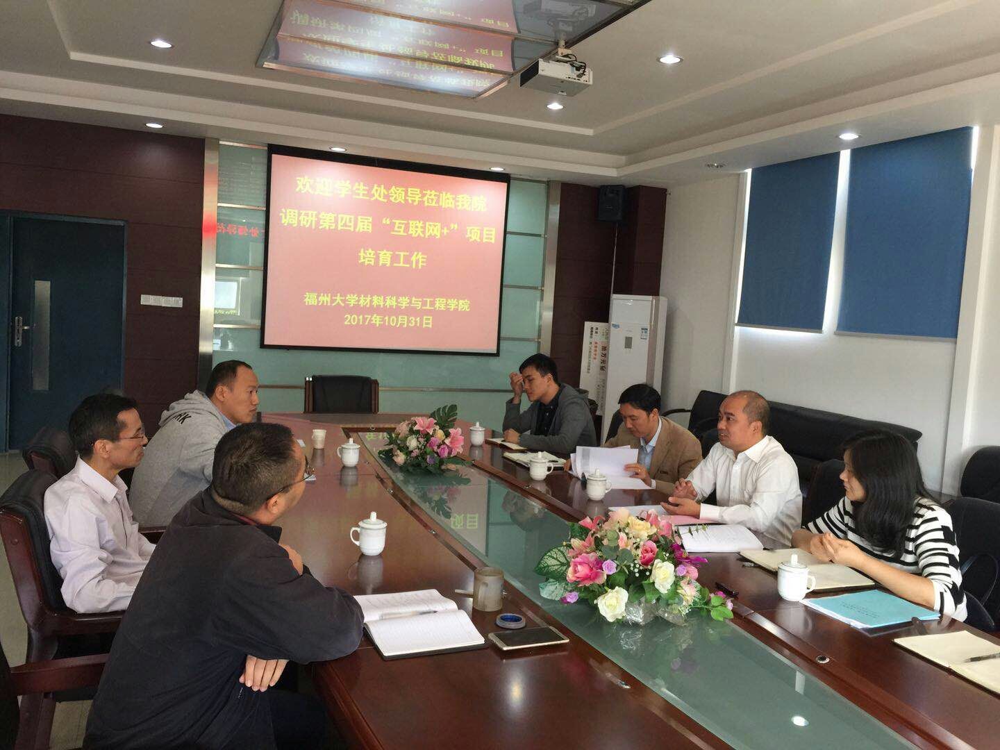 成人网站 历来重视推进“互联网+”大学生创新创业大赛,为确保成人网站 第四届“互联网+”大赛早准备、早筹划、早入选、早提高,10月31日上午,成人网站 学生工作部(处)魏金明处长、叶青副处长、张志忠主任、齐朝阳老师等一行莅临成人网站 调研第四届“互联网+”大赛项目培育工作。成人网站 党委倪朝兴书记、王剑龙副书记、卢杰团委书记、王怡老师、王文栋老师出席了调研会。