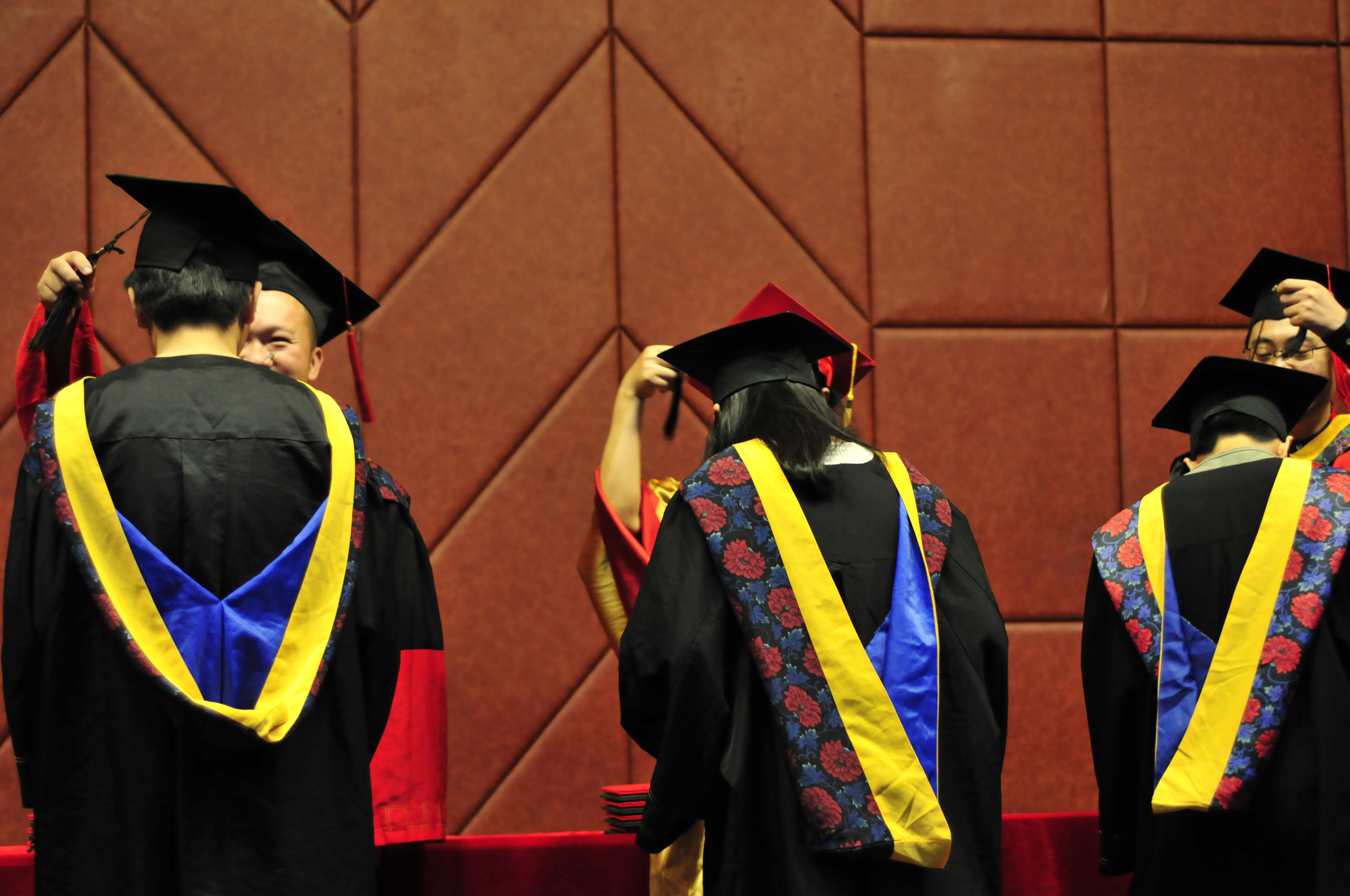 学位授予仪式开始,王晨教授宣读获得成人网站 工学学士学位的同学名单。随后,詹红兵院长身穿金色学士服,头戴红色学士帽,与王晨副院长、张腾副院长两位老师一起共同为毕业生授予学位证书、毕业证。伴随着悠扬的毕业歌,所有毕业生依次上台,并与三位老师握手拥抱,向老师们表达真诚的感谢之情,在拨穗仪式后手持证书与院长合影留念,表达内心的感恩与不舍。仪式结束后,毕业生们纷纷与老师、同学合影,在大学的最后一段日子留下自己的独家记忆。