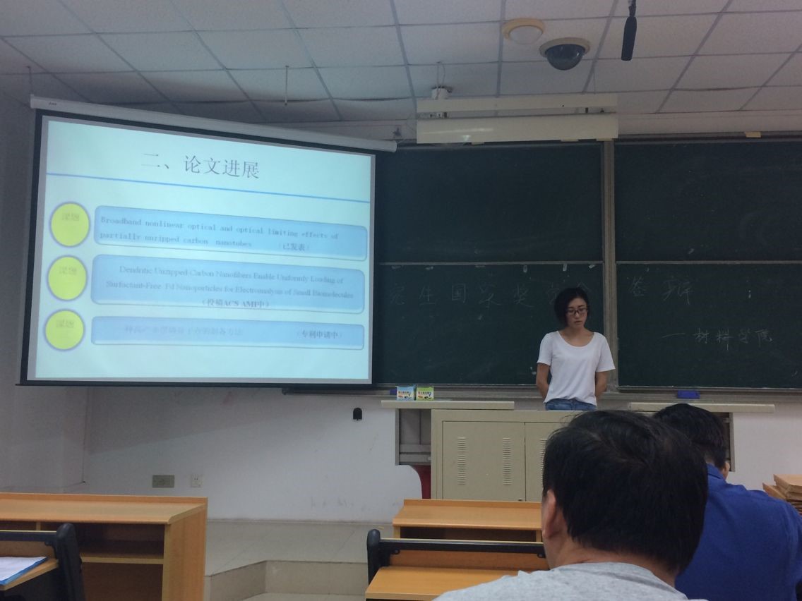 9月30日,为了充分体现学风优良和国家奖学金评选工作的公平公开公正的原则,给优秀研究生更多展示自我的机会。材料学院于西1-301举行国家奖学金公开答辩大会。唐电老师、张腾老师、林枞老师、陈俊锋老师、郭智勇老师、冯苗老师、吕秋丰老师、辅导员卢杰老师以及学生代表张其运、颜佳佳担任评委并现场点评。2015级、2016级的研究生参加了此次国家奖学金答辩会。