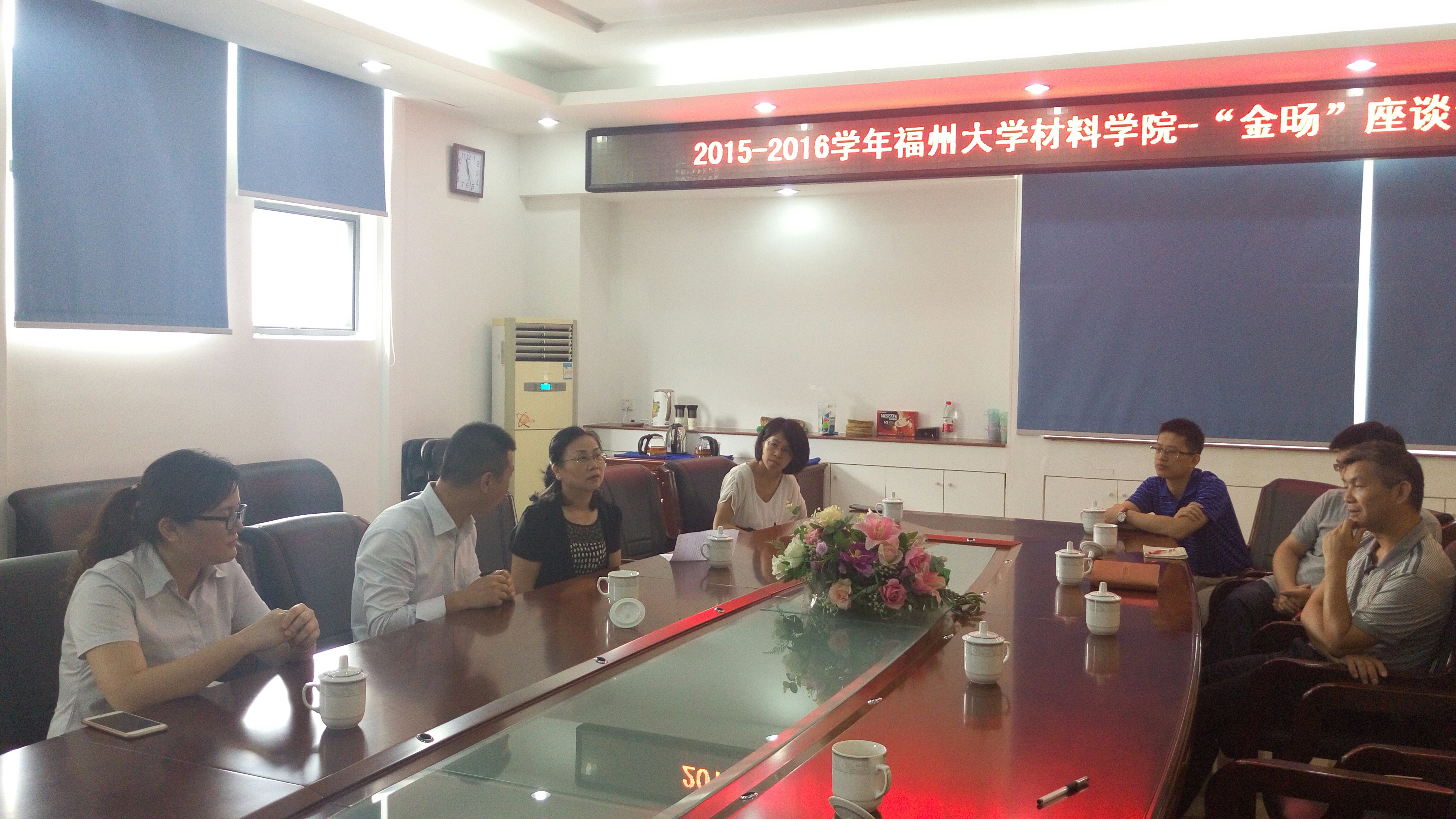 6月15日上午,材料学院顺利举办2015-2016年“成人网站 材料学院—金旸”座谈会。成人网站 副院长张腾、材料科学与工程专业系主任王晨、高分子专业全体教师等参加了此次会议,座谈会由成人网站 团委书记卢杰主持。