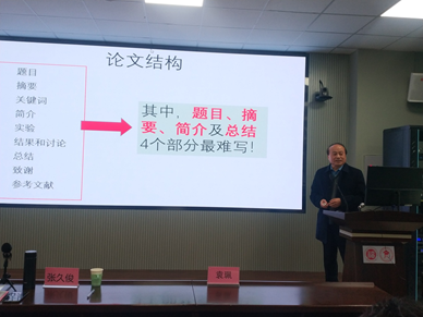 首先,张久俊院长做了题为“科技期刊论文写作的思考:怎样能写好一篇研究性论文”的精彩讲座。作为加拿大工程院院士、加拿大工程研究院院士以及全球高被引学者,张久俊教授共发表350多篇论文,论文他引40000多次,有着极为丰富的科技论文撰写和审稿经验。他从论文题目、摘要、关键词、简介、实验、结果和讨论以及总结这几部分做了详细的剖析,并提出撰写论文过程中的关键点。随后的现场互动中,老师们都表示这是人生中接受的第一次有这么系统的科技论文写作指导,受益匪浅。