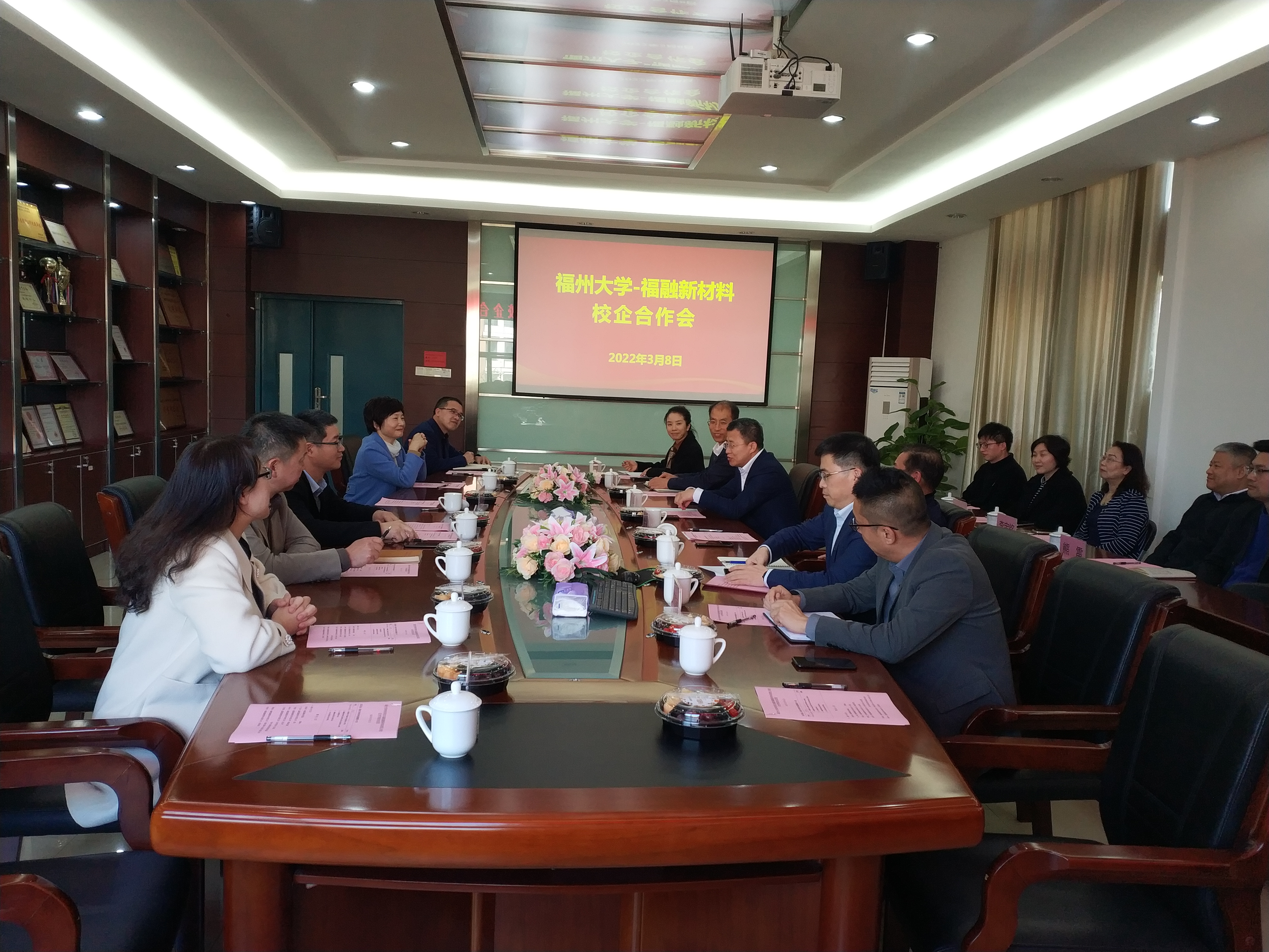 2022年03月08日下午,福建福融科技集团董事长詹金瑞、福建福融新材料有限公司总裁张曦、高级副总裁卓毛健全等一行来到成人网站 材料学院洽谈合作事宜。成人网站 副校长王心晨、校科技成果转移转化中心主任黄国辉、材料学院院长张久俊院士、院党委书记倪朝霞、执行院长袁珮、副院长林梅金等出席了本次会议。