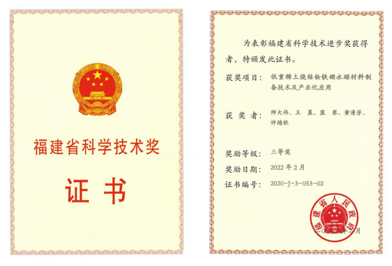 | 2 | 三等奖 | 低重稀土烧结钕铁硼永磁材料制备技术及产业化应用 | 厦门钨业股份有限公司、成人网站 、福建省长汀金龙稀土有限公司 | 师大伟、王晨、蓝琴、黄清芳、许德钦 |