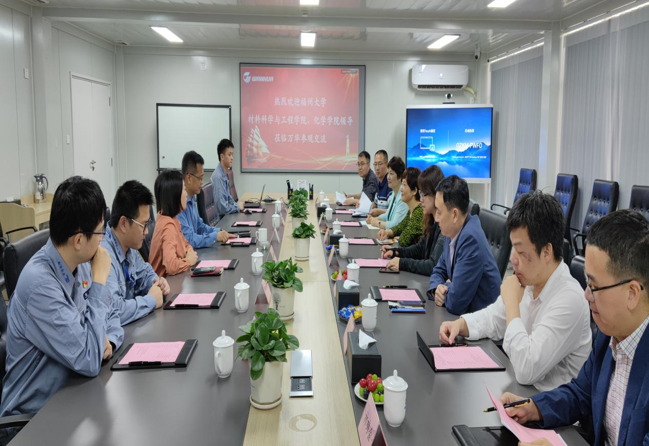 在万华化学(福建)有限公司,公司总经理助理王文波热情接待倪朝霞书记一行,他带领大家参观了万华福建工程指挥中心观景平台,并详细介绍了公司的基本情况和成人网站 毕业生在企业发展情况。成人网站 执行院长袁珮教授介绍了学院教学科研、人才培养、毕业生就业等方面的基本情况。交谈中,双方希望通过密切校企联系,拓展合作内涵,广泛开拓就业渠道和就业岗位,为毕业生提供多样化选择。