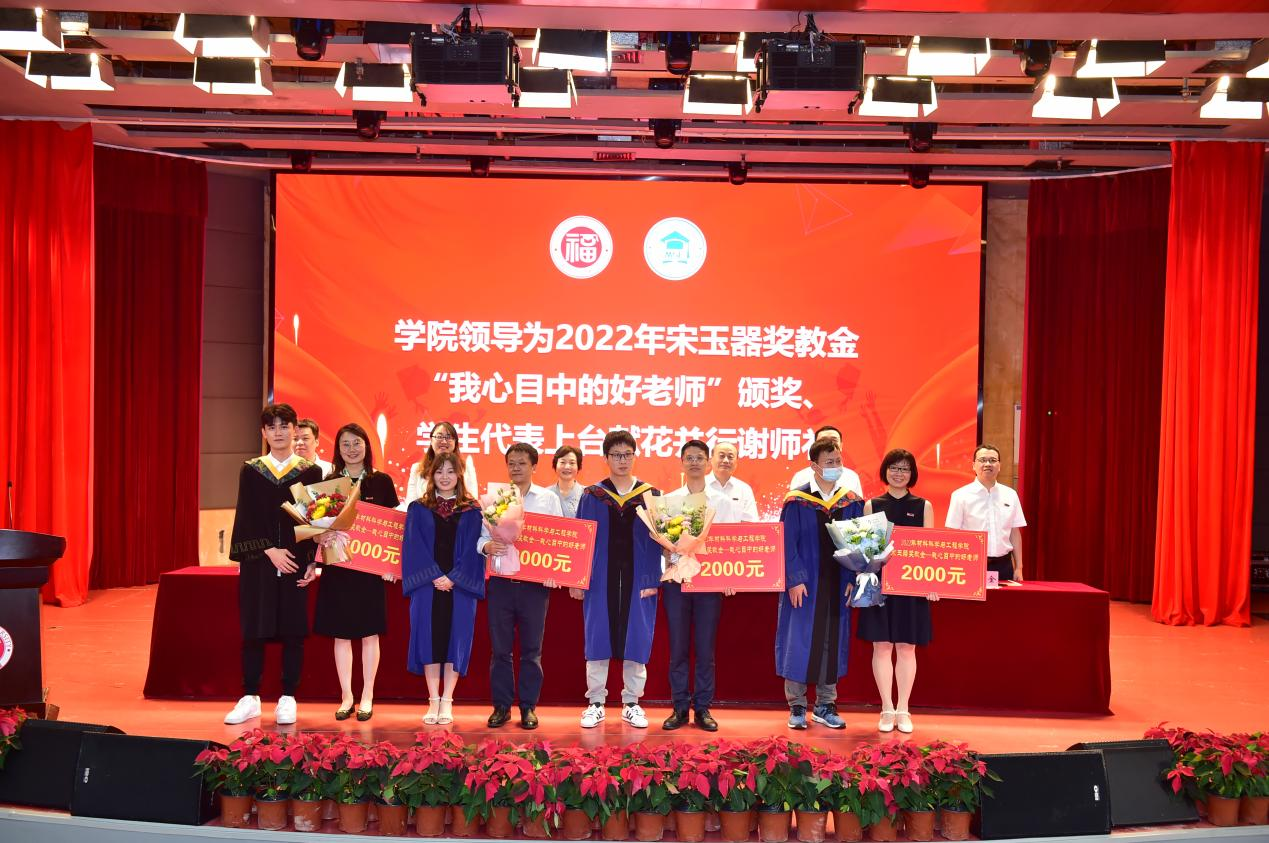 接着,由倪朝霞书记宣读2022届优秀毕业生、2022届本科毕业生升学先进个人、2022年宋玉器奖学金—考研奖及2022年宋玉器奖教金—“我心目中的好老师”表彰决定,并由院领导为获奖同学和老师进行颁奖。