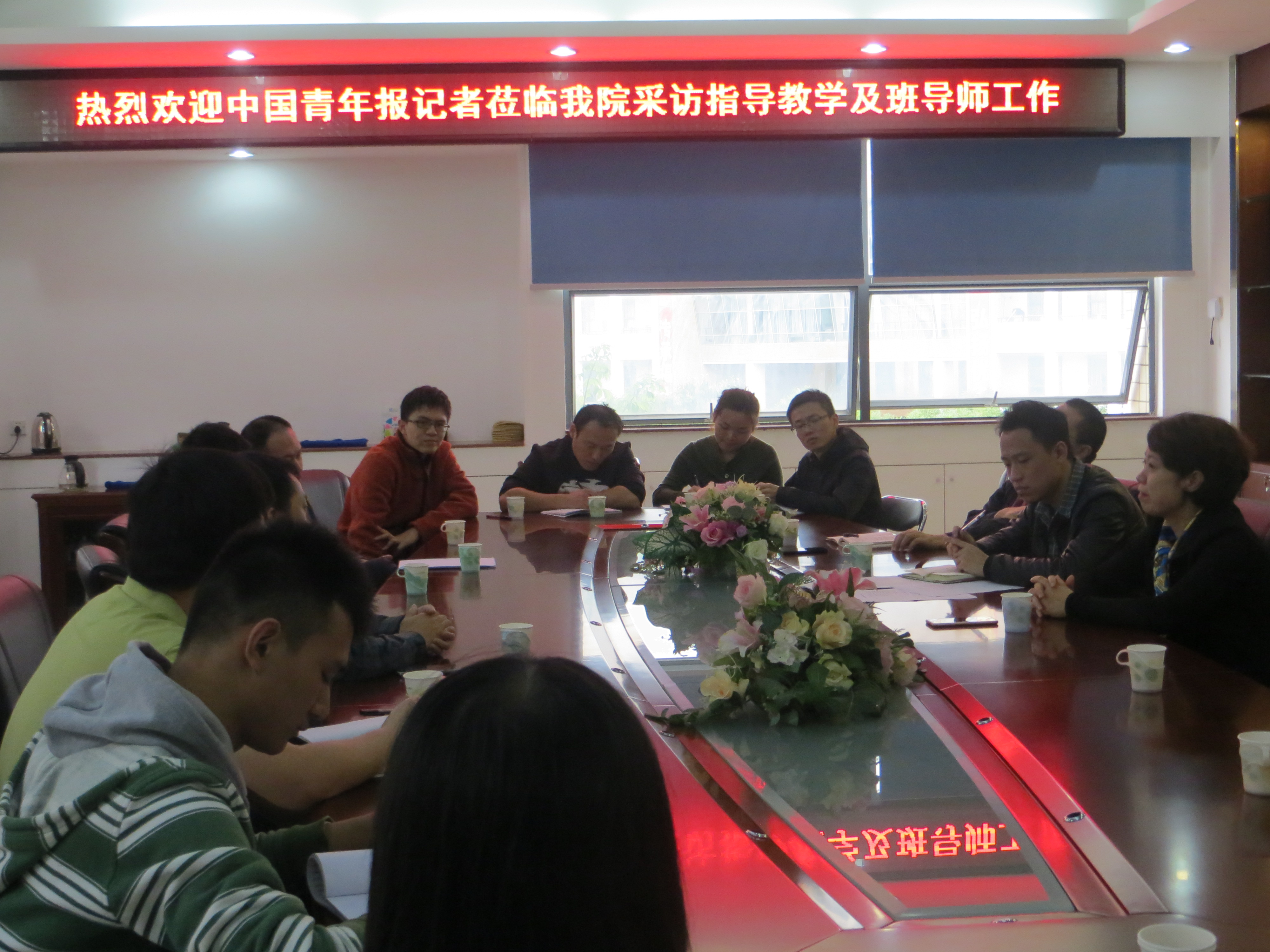 成人网站 近年来开展的班主任、导师工作取得较好成效,引起社会媒体广泛关注。11月2日下午,中国青年报记者林智仁至成人网站 采访。采访以座谈会的形式在嘉锡楼313会议室进行,出席座谈会的有分管教学副院长于岩、党委副书记王剑龙、班主任、导师代表、政工代表和学生代表。