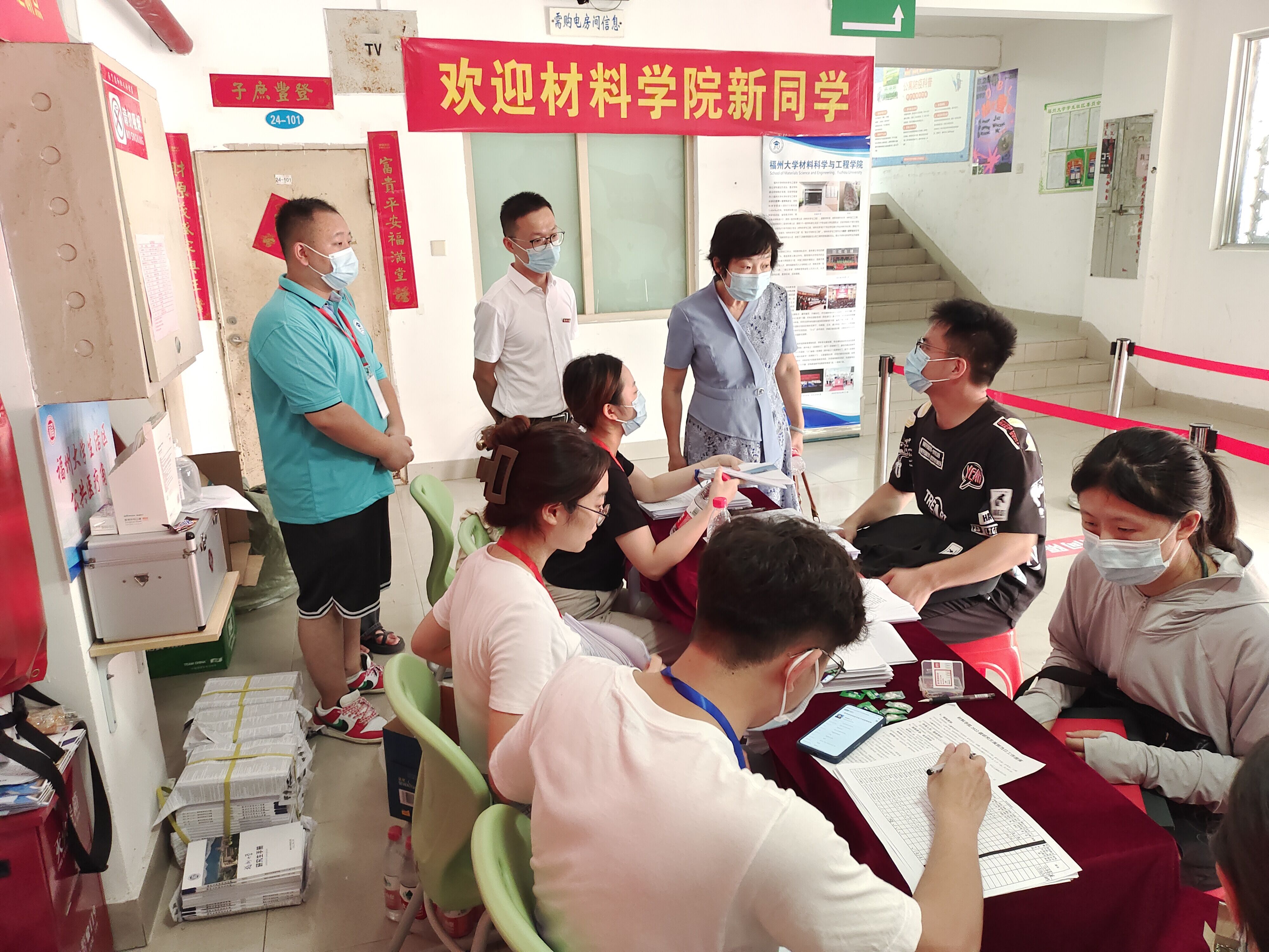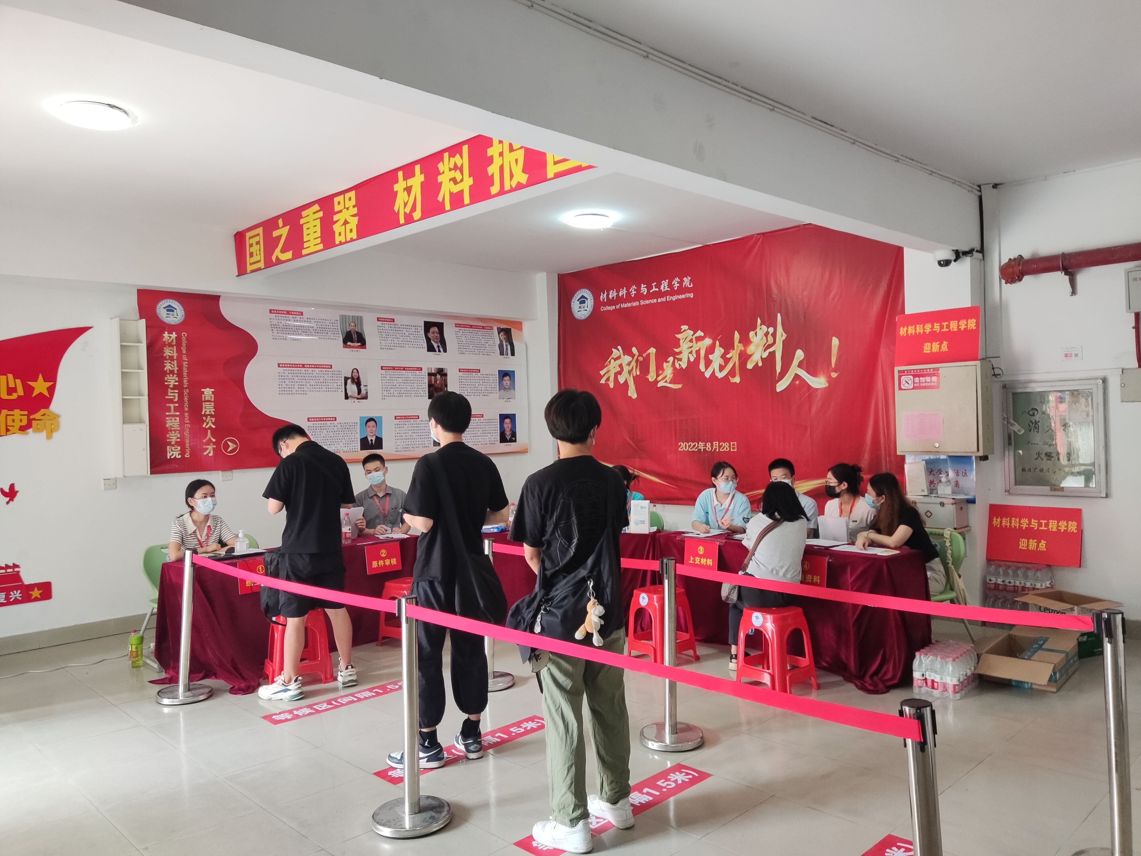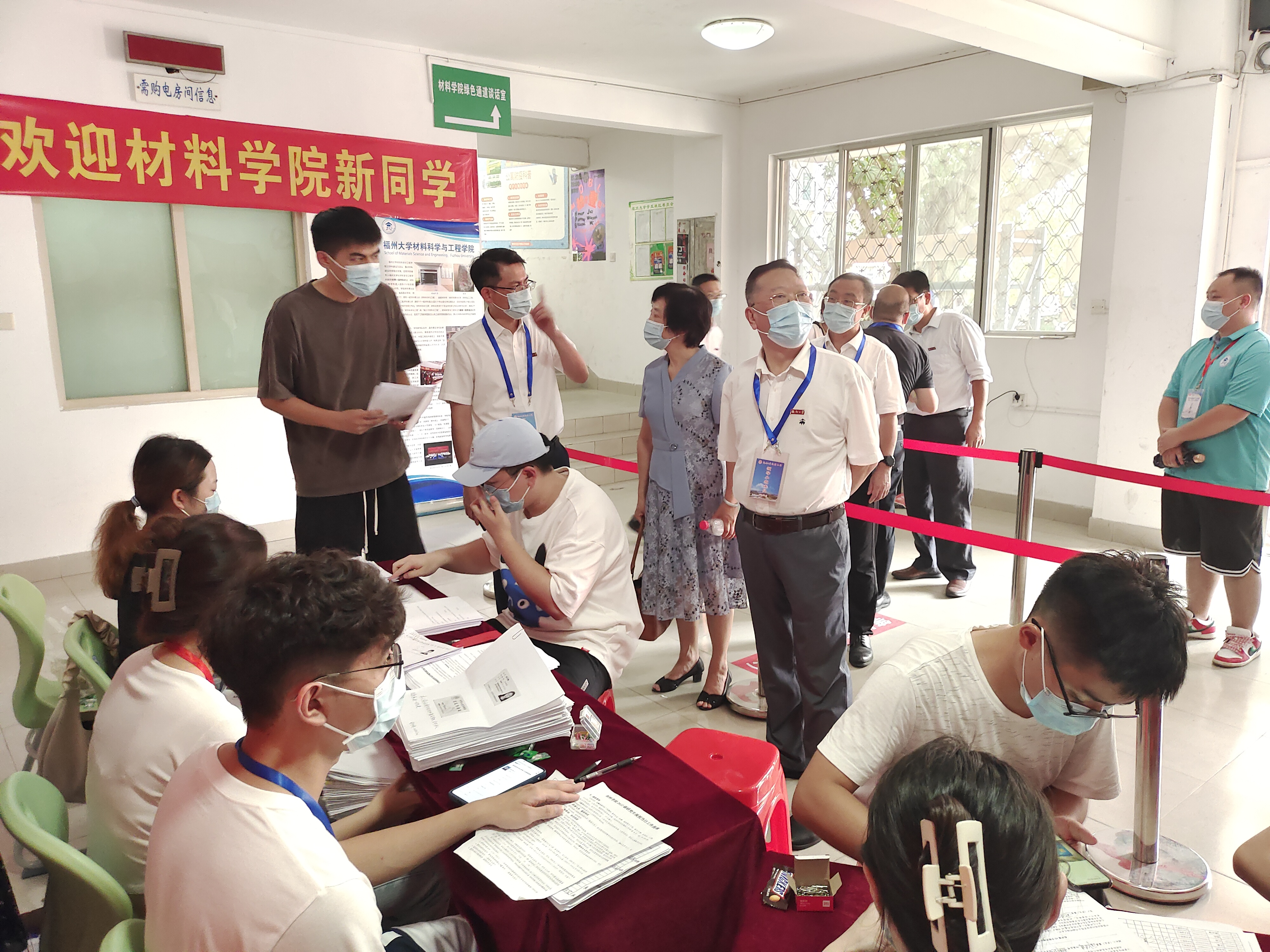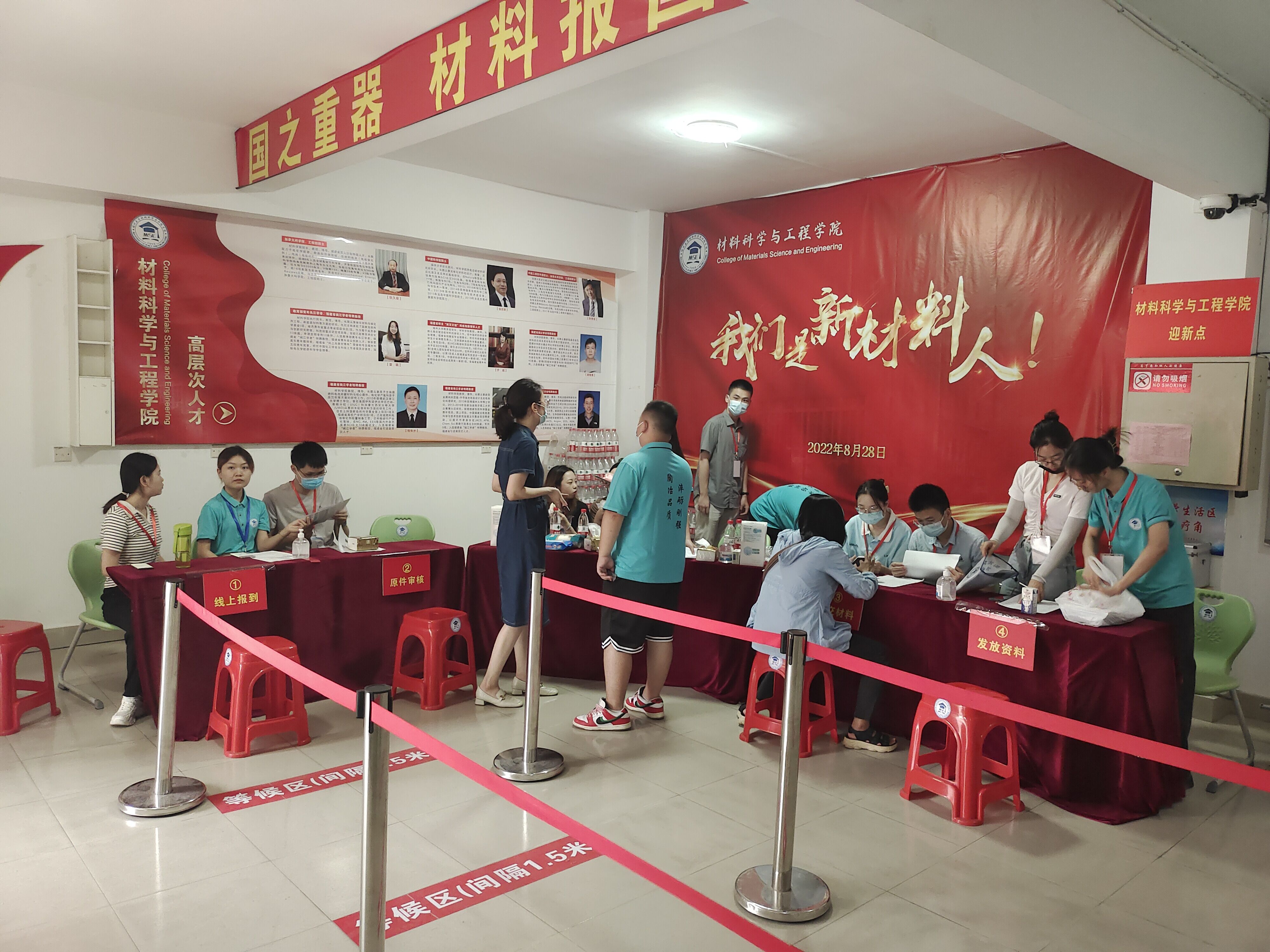 金风送爽,丹桂飘香。8月28日,成人网站 2022级研究生新生迎新工作在成人网站 旗山校区生活二区24号楼大厅正式展开。迎新工作在材料学院党委倪朝霞书记、袁珮执行院长、张志忠副书记的指导下,在学院牛秋月团委书记,王怡辅导员,王文栋辅导员、梁滢老师、杨娟辅导员携研会干部的部署安排下,由院研究生会牵头,招募了多名学生志愿者参与,共同保障迎新工作顺利完成。