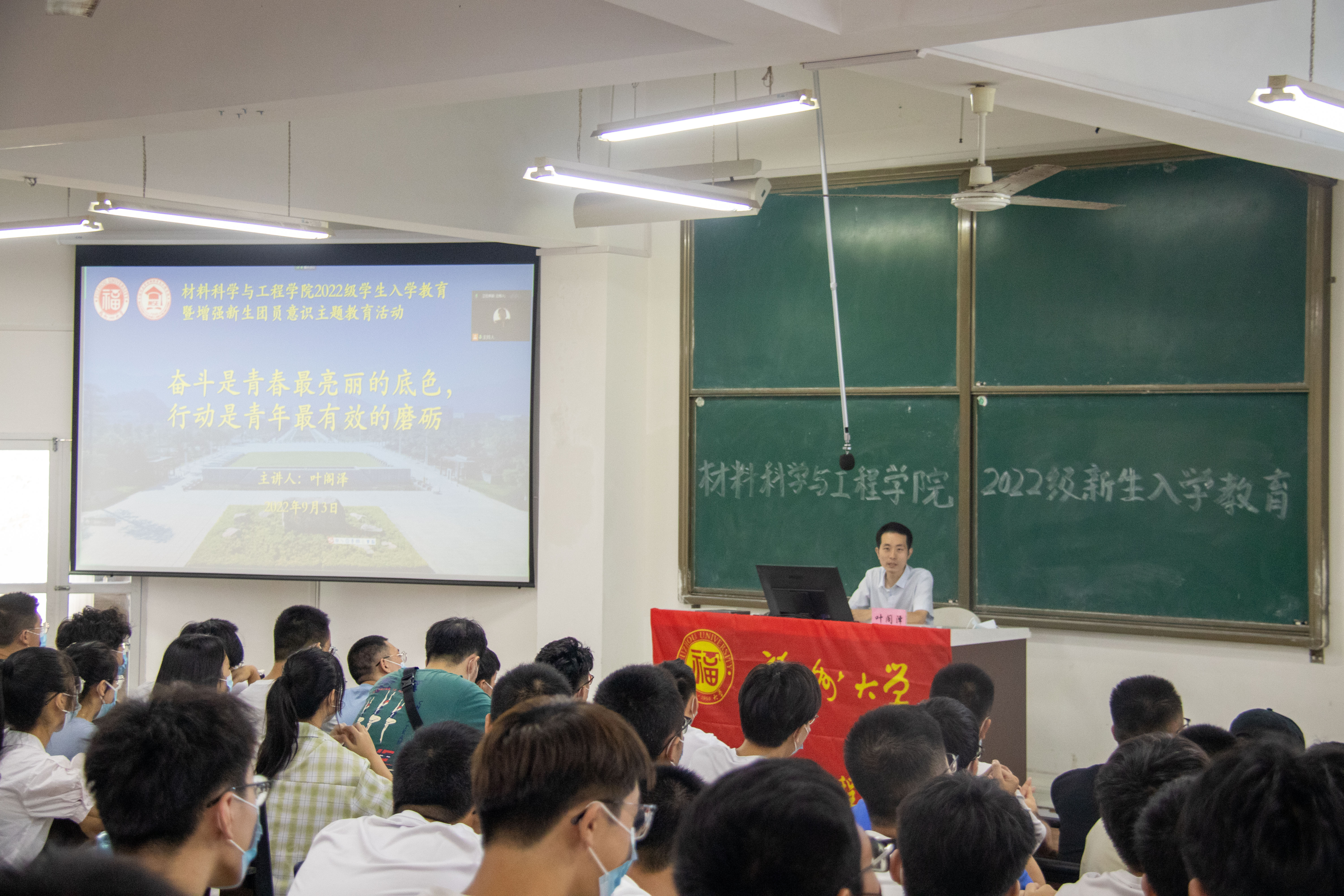 本次活动由成人网站 团委副书记叶阁泽老师主讲,成人网站 党委张志忠副书记出席,团委书记牛秋月老师主持,全体2022级新生参会。