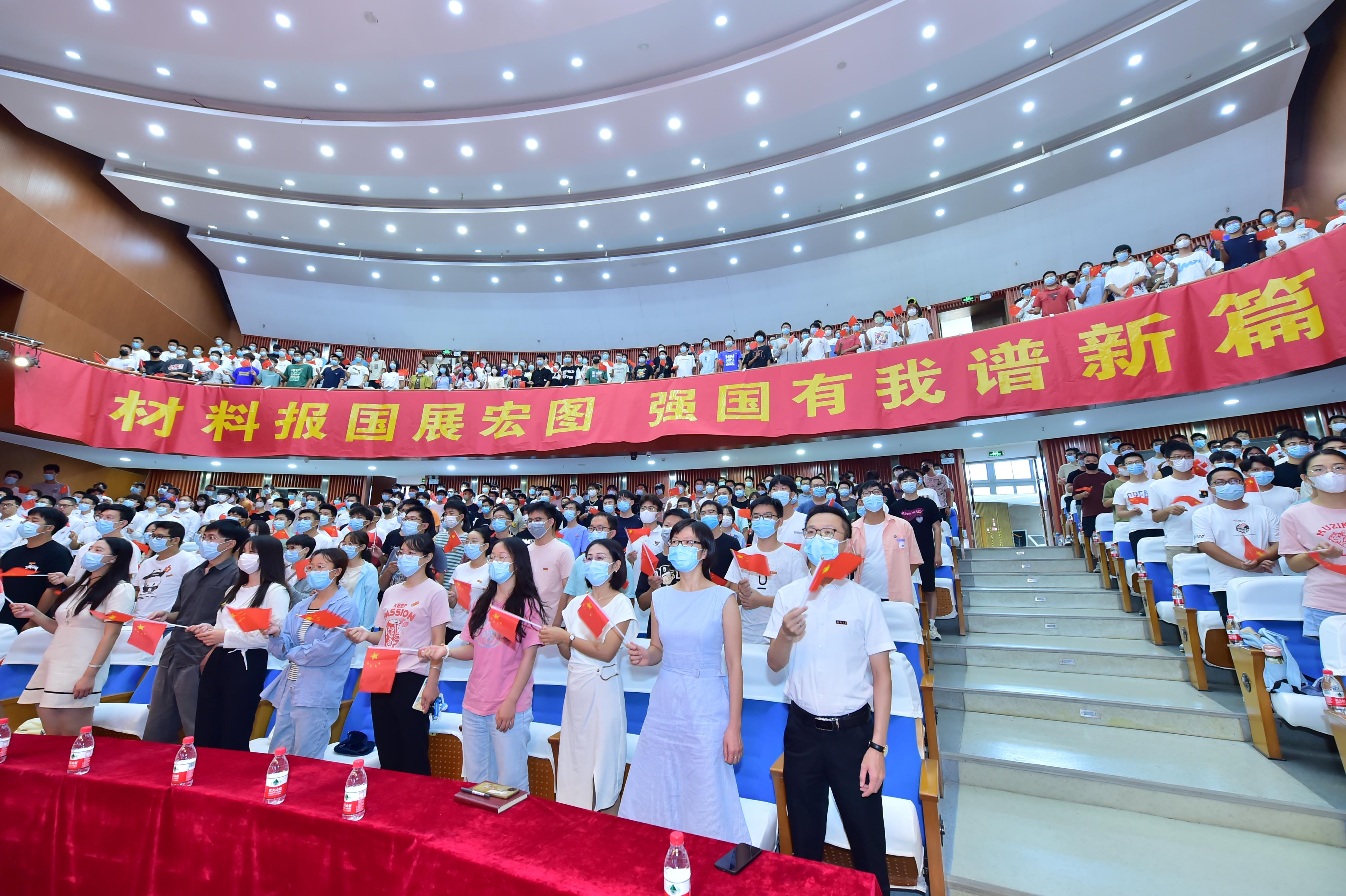 最后,全场合唱歌曲《我和我的祖国》。同学们挥舞着手中的国旗,目光如炬,怀揣着“材料报国,强国有我”的信念,在歌声中迎来不拘一格而又丰富多彩的大学生活。