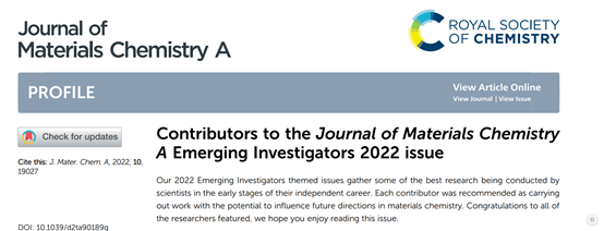 JMCA Emerging Investigators旨在颁授给在材料化学领域取得创新性研究成果的新锐科学家,并收录相关材料化学领域青年科学家在其独立开展研究工作早期所发表的高水平研究成果,他们在材料化学领域取得的成果被认为有望影响材料化学的未来发展方向。2022年度全球共有80名青年科学家入选。