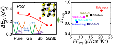 图1. GaSb降低PbS导带间能量差,促进导带收敛,获得高功率因子和热电优值