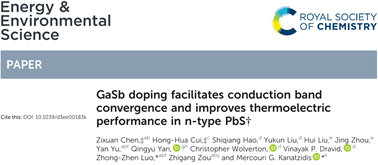 近日,成人网站 罗中箴教授与合作者在N型PbS热电材料导带收敛研究方面取得新进展,相关研究结果发表在《Energy & Environmental Science》。成人网站 热电功能材料实验室(2020年依托成人网站 成立)博士生陈紫煊为该论文第一作者,论文得到了邹志刚院士和美国西北大学Mercouri G. Kanatzidis教授的指导,成人网站 为第一通讯单位。