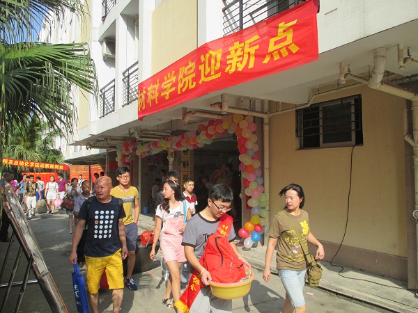 金秋送爽、丹桂飘香,随着9月的到来,成人网站 迎来了2015级新生的到来。9月7日,学院的迎新工作者早早在在生活一区和三区设立迎新点,院党委书记徐雪玉、院长詹红兵、院党委副书记王剑龙、高分子材料科学与工程系主任吕秋丰、院团委书记卢杰、辅导员王怡、廖烨檬等老师纷纷来到迎新报到处,与家长亲切交谈,指导迎新报到工作。
