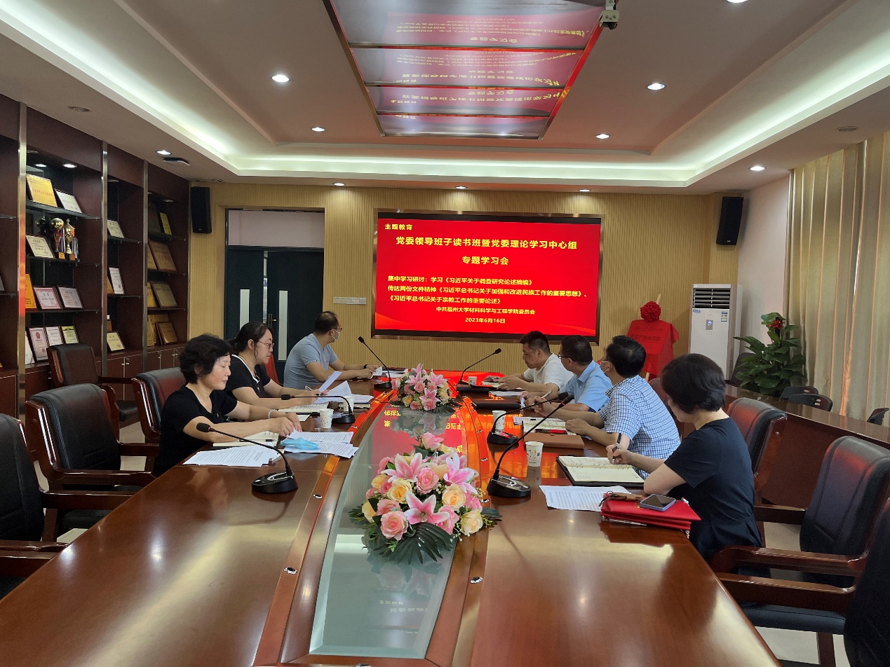 2023年6月16日上午,材料学院在嘉锡楼313会议室召开学习贯彻习近平新时代中国特色社会主义思想主题教育党委领导班子读书班暨党委理论学习中心组专题学习会。会议由学院党委书记倪朝霞主持,学院党委领导班子成员参会。