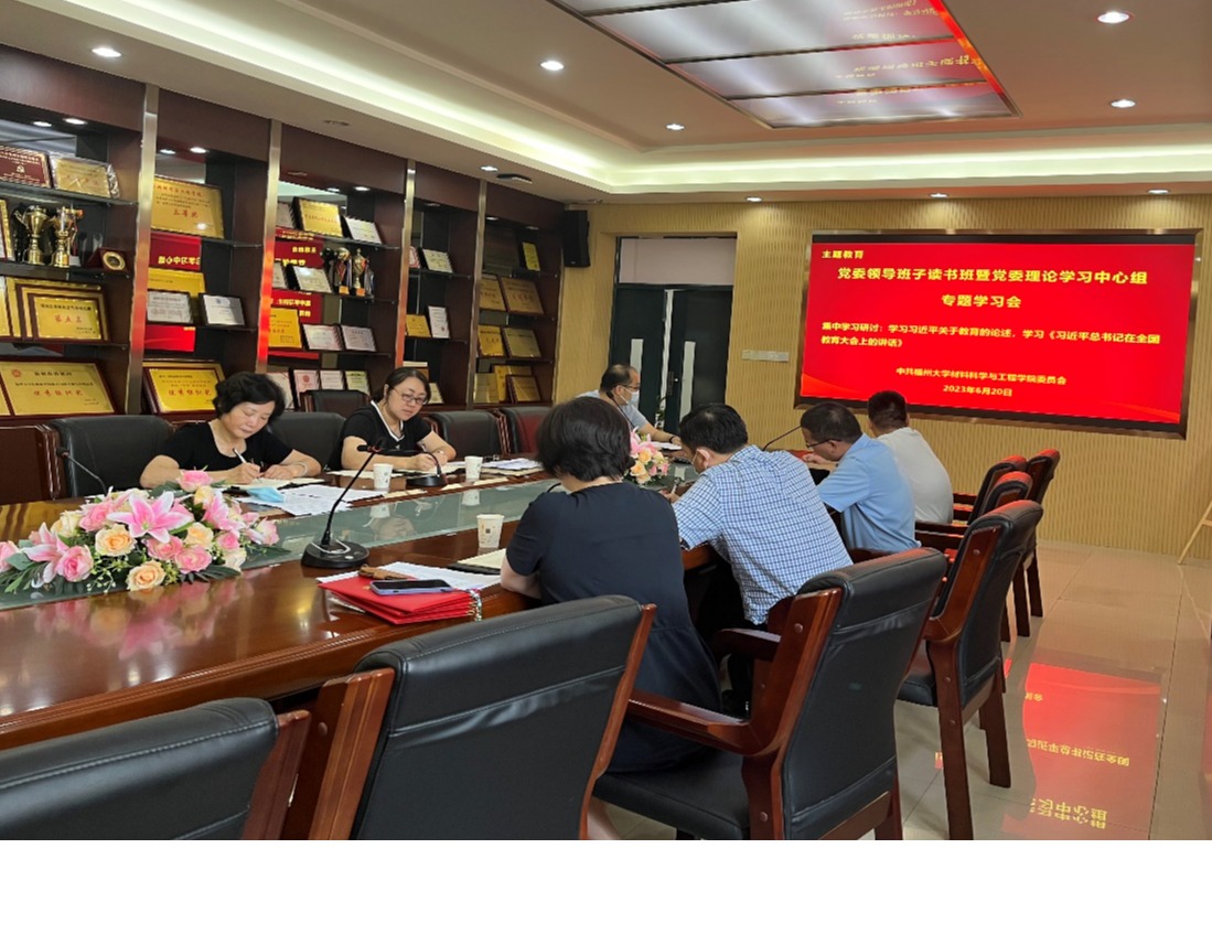 2023年6月20日上午,材料学院在嘉锡楼313会议室召开学习贯彻习近平新时代中国特色社会主义思想主题教育党委领导班子读书班暨党委理论学习中心组专题学习会。会议由学院党委书记倪朝霞主持,学院党委领导班子成员参会。