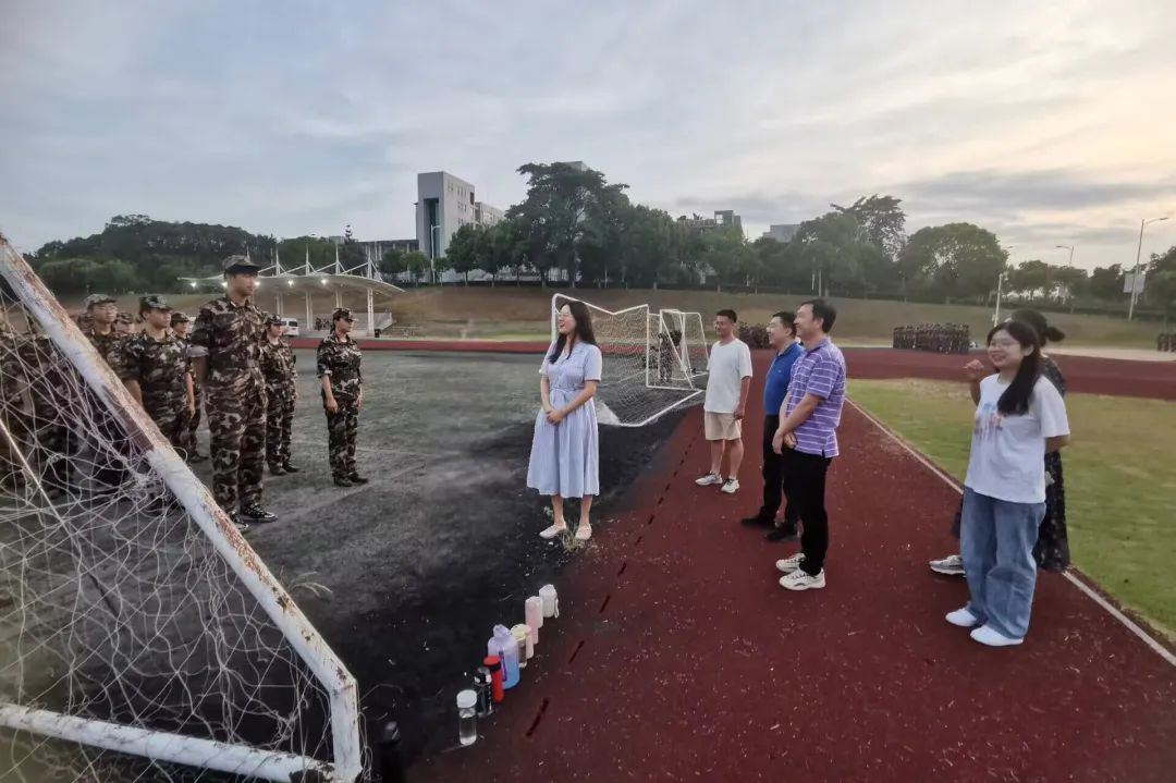 7月14晚,学院党委罗涛书记、党委张志忠副书记、团委牛秋月书记、专职辅导员张庭士老师一行来到铜盘校区训练场,看望慰问成人网站 2022级参训学生、军训教官及带训辅导员。