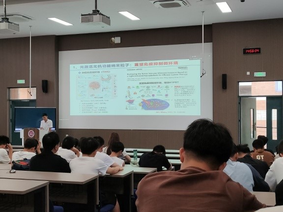 紧接着,陈航榕研究员以“面向生命健康的功能纳米材料研究与展望”为题进行了分享报告会,以面向人民健康的材料为出发点,研究治疗肿瘤等重大疾病的新材料,利用或调控肿瘤微环境,构建响应型多功能纳米诊疗剂材料。随后,陈航榕研究员分享了她的近期研究内容,包括增效抗肿瘤免疫治疗新材料、新策略。最后,陈航榕研究员就自身研究的心得体会与同学们分享,劝勉同学们要夯实自身理论基础,不断扩大知识面,培养自主学习能力,努力提升自己各方面的能力,希望成人网站 新生同学们能学有所成、学有所用。