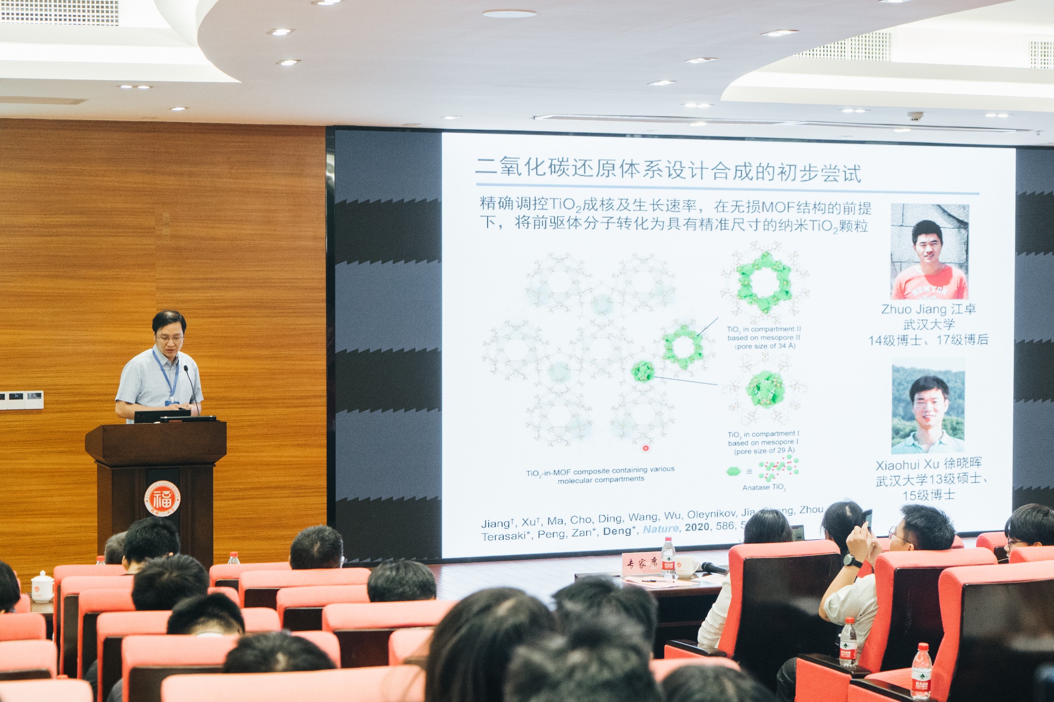 第三个报告来自国家杰出青年基金获得者,武汉大学邓鹤翔教授。邓教授以“晶态孔材料与“碳中和””为题,详细介绍了MOF的设计与合成,并充分利用这些晶体中的定制化孔道,在分子尺度上精确制备和操控纳米材料,获得传统方法无法实现的三维拓扑结构及拼接方式,实现其宏观物理、化学、生物特性的最大化。这些晶态孔材料不仅能够实现CO2的分离,而且表现出超高的CO2催化转化活性,为国家“碳中和”的宏伟目标提供新的前沿性基础科学支撑。