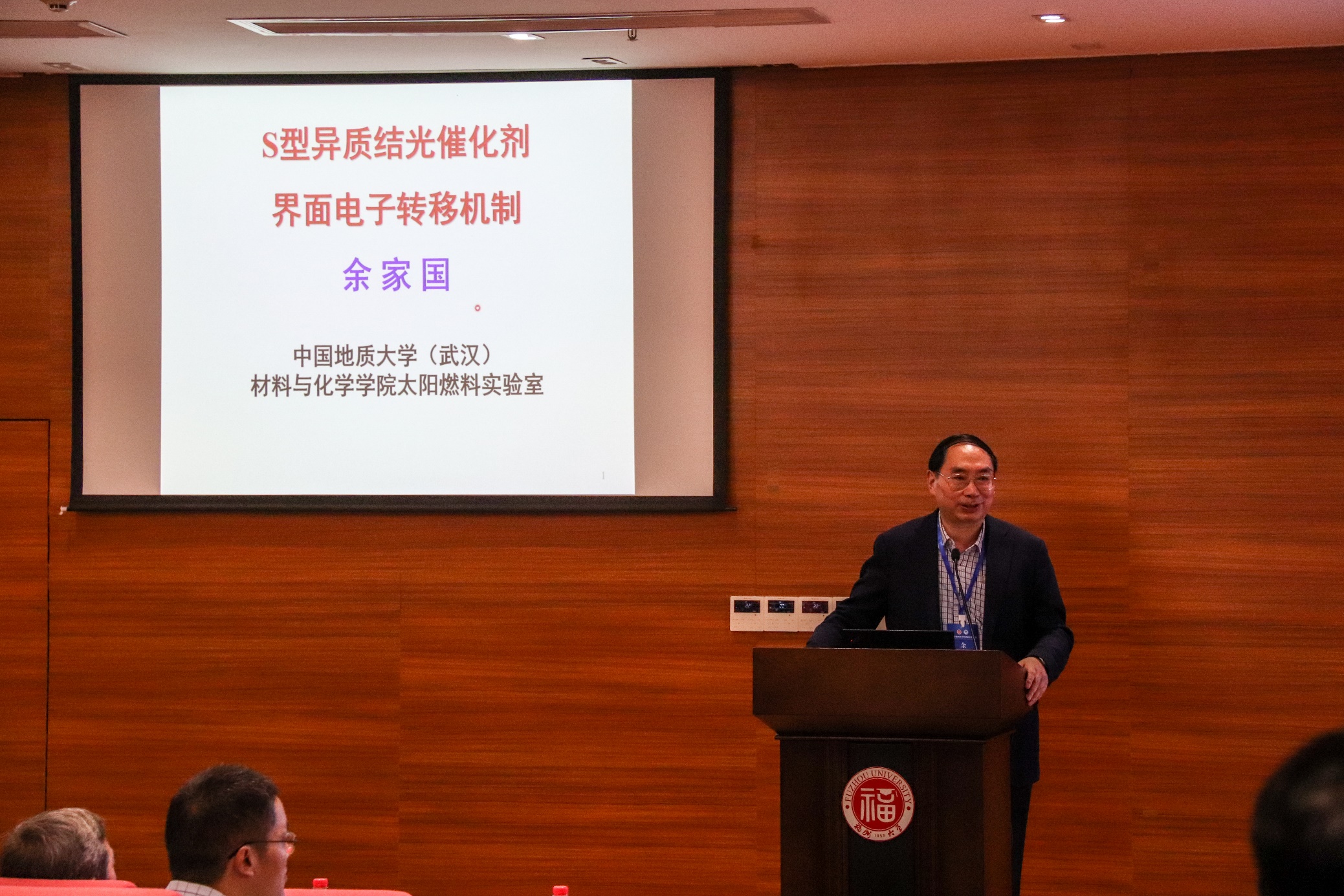 首先,欧洲科学院外籍院士、国家杰出基金获得者,中国地质大学余家国教授以“S型异质结光催化剂界面电子转移机制”为题,详细介绍了光催化领域多种类型的异质结概念,指出S型异质结是光催化领域的一个新概念,被广泛用于指导高效光催化剂的设计和制备。得益于增强的氧化还原能力和高效的电荷载流子分离,S型异质结在各种光催化领域引起了广泛关注,包括制氢、二氧化碳还原、污染物降解、过氧化氢生产、消毒杀菌和有机合成等。余教授重点介绍了S型异质结的界面电子转移机理和表征,提高了现场师生对S型异质结及其机理的认识。