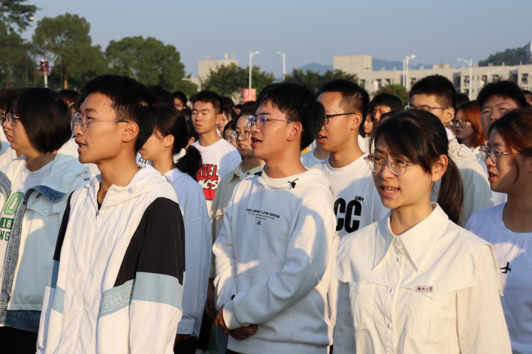 “歌唱我们亲爱的祖国,从今走向繁荣富强”——全体师生齐声合唱《歌唱祖国》,歌声嘹亮,传达的是青年学子最美好的祝愿,展现的是新一代青年人厚植于心的家国情怀。