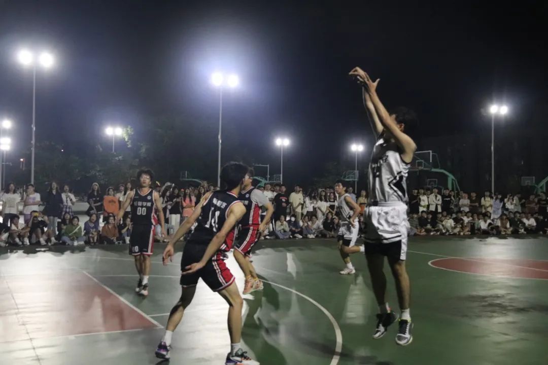 哨声响起,双方队员都蓄势以待,个个雄姿英发。参赛的球员们饱含激情,在赛场上尽情挥洒青春与汗水,他们在篮球场上你争我夺、你攻我守,篮球滑过优美的弧线,一个个篮球被投入框中。他们在球场上肆意奔跑,一记记三分夺人眼球,同学们热情地呐喊,将比赛的氛围推向了最高潮。