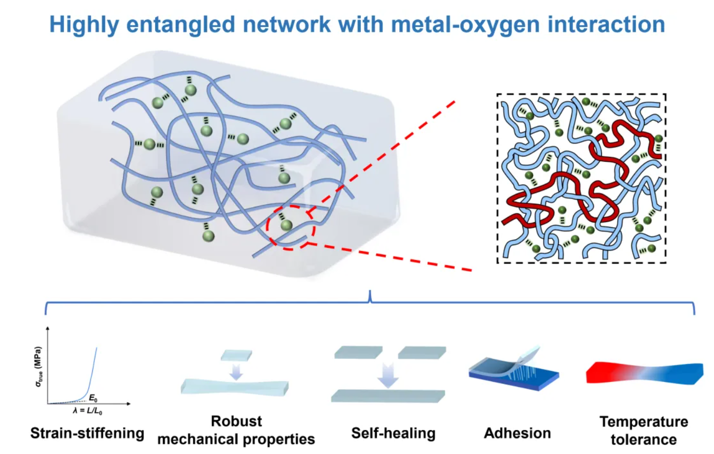 近日,成人网站 ,热电功能材料研究所在离子导电弹性体材料研究方面取得进展,题为“Strain-Stiffening, Robust yet Compliant Ionic Elastomer from Highly Entangled Polymer Networks and Metal–Oxygen Interactions”的文章发表在《Advanced Functional Materials》期刊上(影响因子19.0,中科院一区)。
