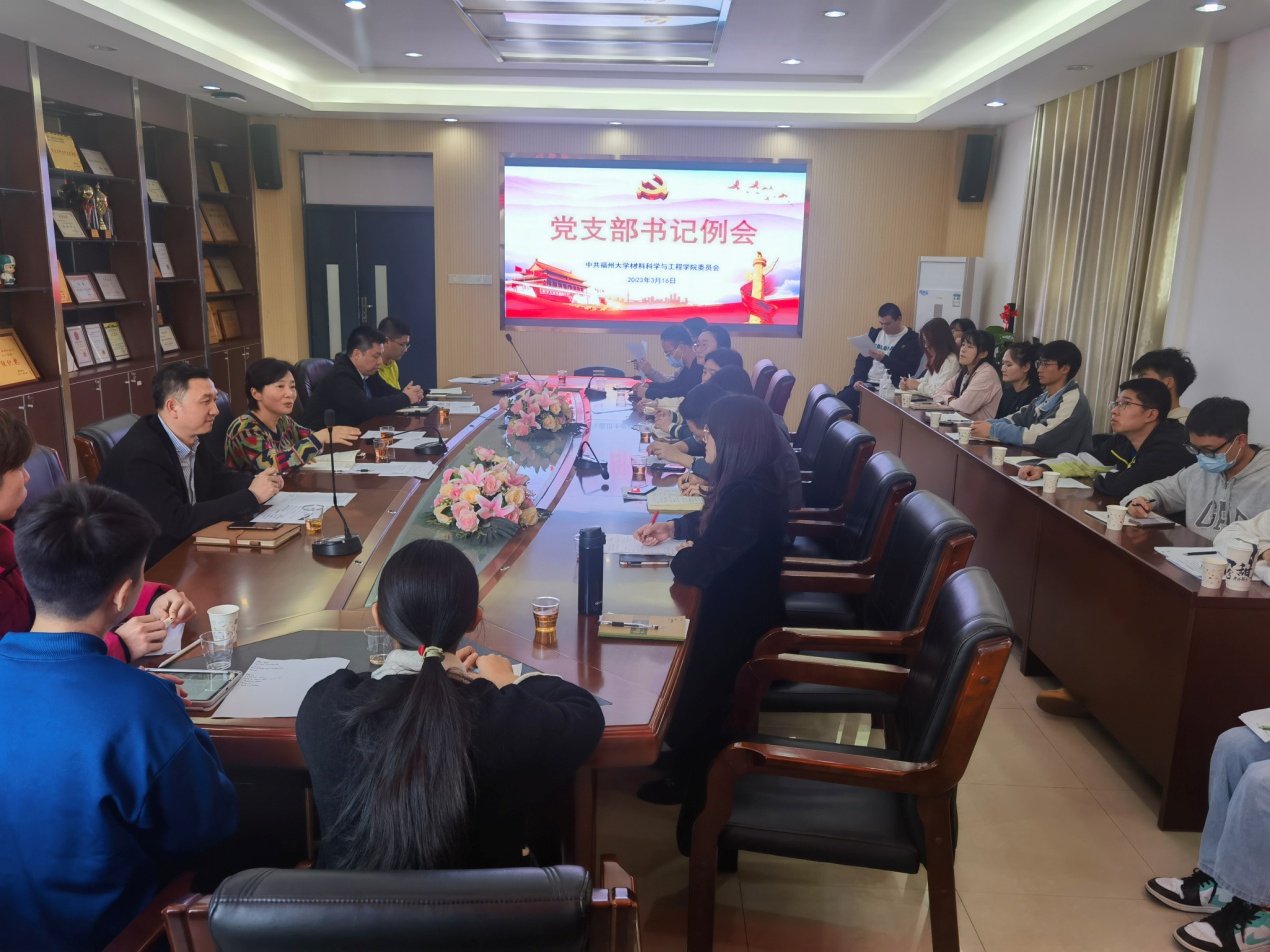 2023年3月16日下午,材料学院2023年度第一次党支部书记例会在嘉锡楼313会议室召开。学院党委委员、全体师生党支部书记参加了会议。会议由院党委书记倪朝霞主持。