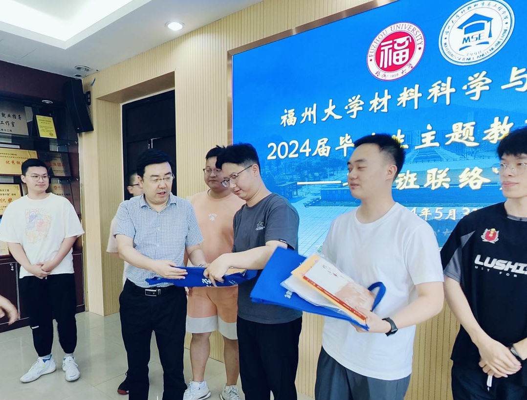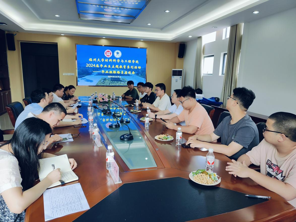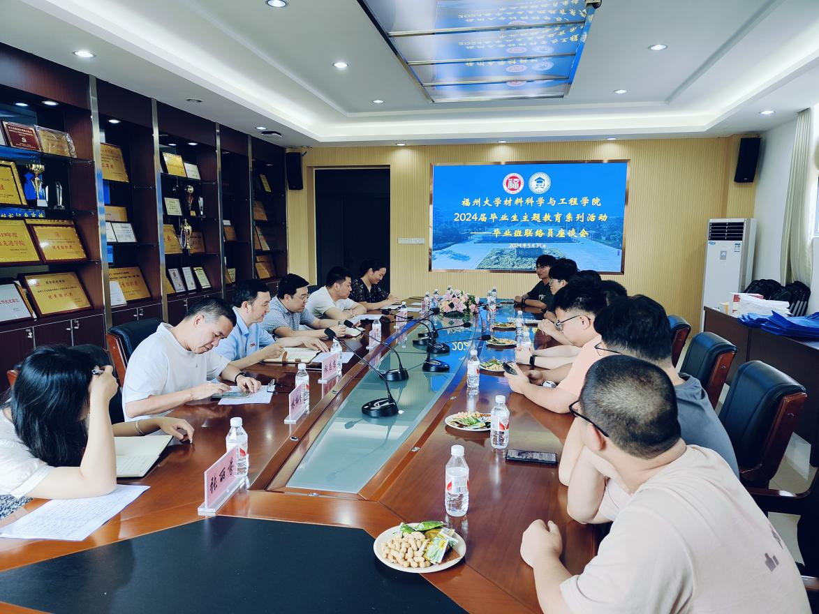 5月31日,材料学院在嘉锡楼313会议室开展党委书记讲党课暨2024届毕业生主题教育系列活动之毕业班联络员座谈会。学院党委罗涛书记、林枞副院长、林梅金副院长、团委牛秋月书记、专职辅导员张丽芬老师出席会议,2024届毕业生班级校友联络员、年级校友召集人参加会议,会议由学院党委张志忠副书记主持。