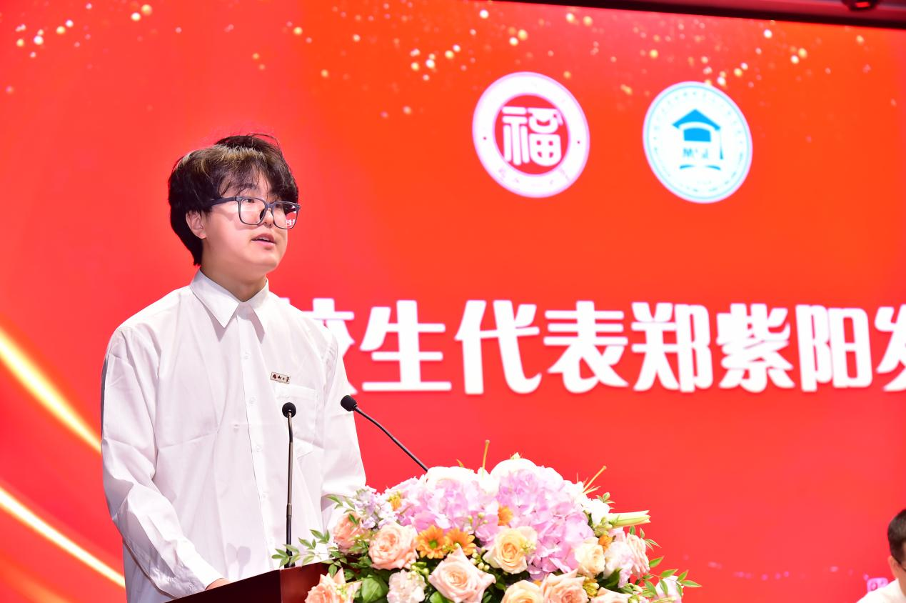 在校生代表郑紫阳同学向学长学姐们献上最诚挚的敬意,祝愿他们未来的旅途一帆风顺,书写出属于自己的辉煌篇章,以实际行动践行“明德至诚汇聚材料报国梦,博学远志铸就强国材料人”。