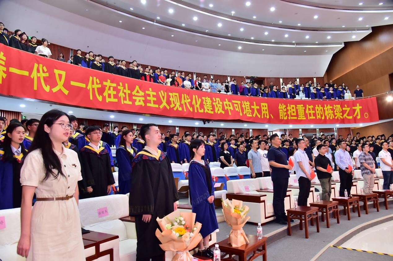 毕业典礼在全体合唱国歌的肃穆氛围中拉开序幕。