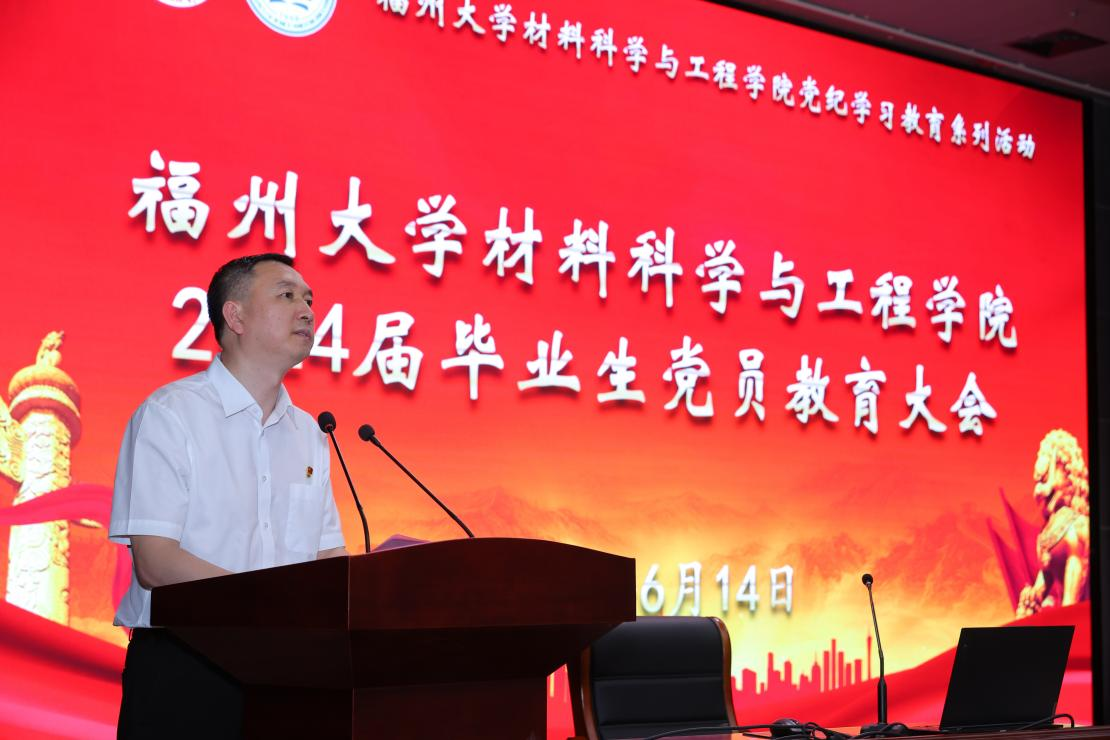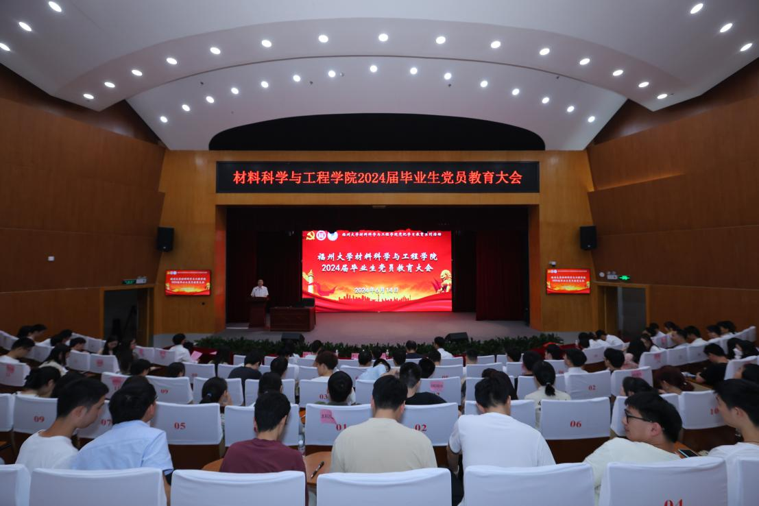 为深入开展学习贯彻习近平新时代中国特色社会主义思想主题教育工作,引导广大毕业生成为胸怀“国之大者”、勇于担当重任的福大人,同时加强党员党风党纪教育,学党纪,明规矩,守初心,强党性,规范党组织关系转接管理,6月14日下午,材料学院于旗山校区图书馆明德厅举办2024届毕业生党员教育大会。