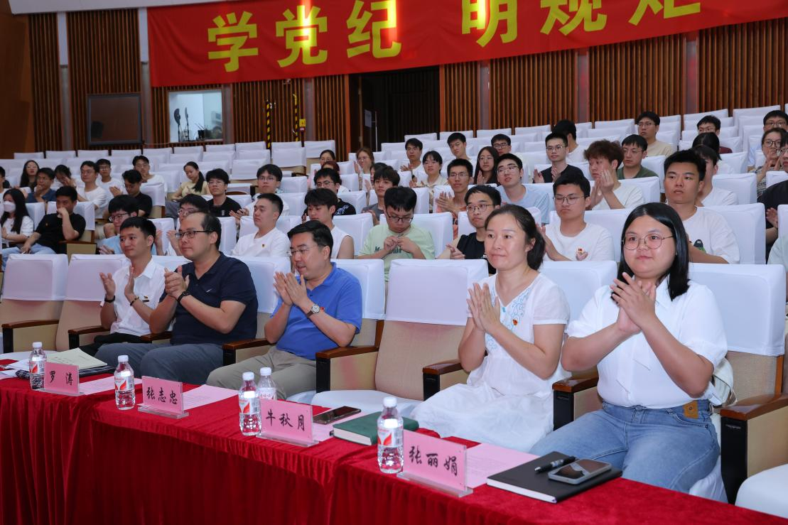大会伊始,全体党员齐唱国际歌,歌声庄严而肃穆,响彻礼堂。曲毕,全体毕业生党员共同观看党纪学习教育警示视频,以清正劝勉,以廉政警醒,指引着同志们未来的道路,同志们深有感悟。而后党委罗涛书记为同志们进行党员党风党纪教育。在优秀毕业生党员代表陈煜发言后,党委罗涛书记为毕业班党支部代表颁发了党徽。