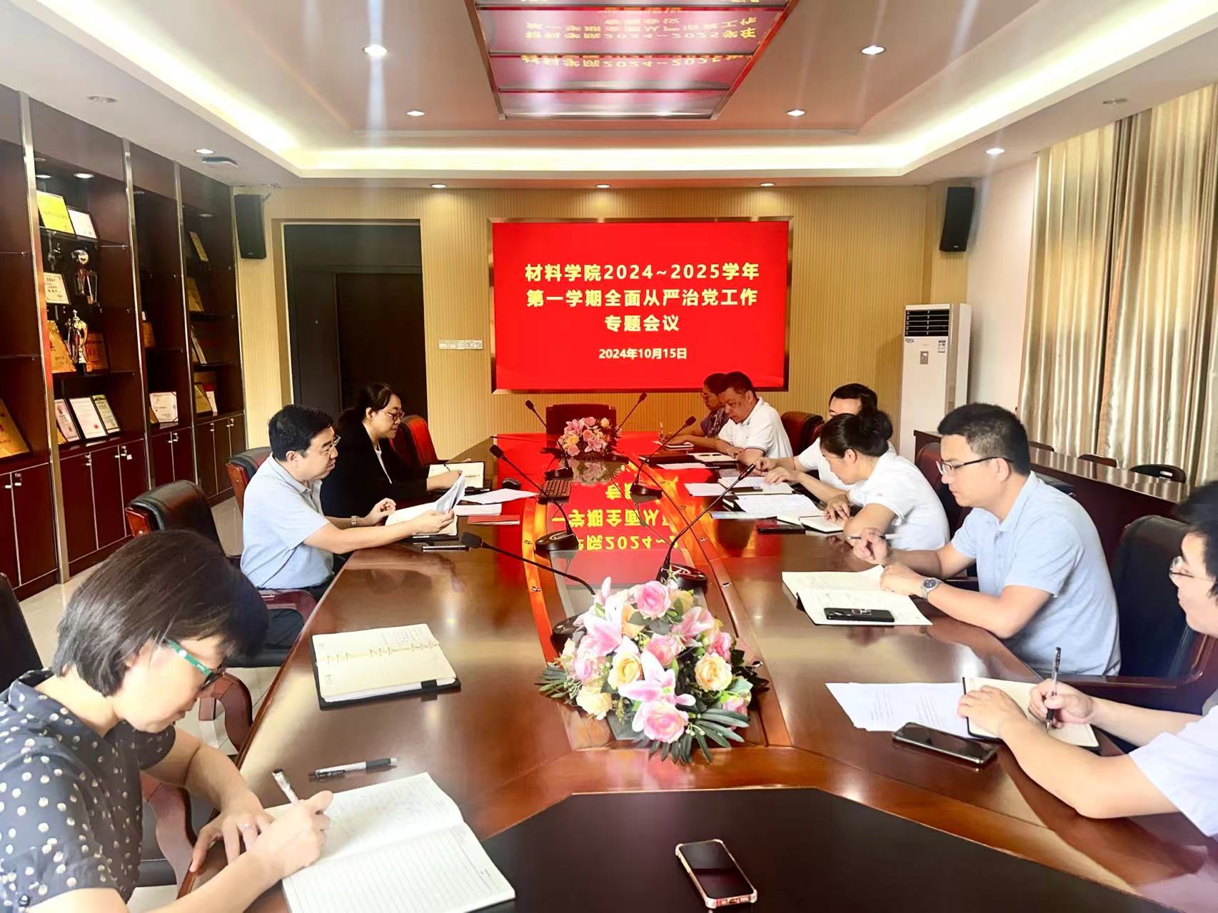 2024年10月15日上午,材料学院在嘉锡楼313会议室召开2024~2025学年第一学期全面从严治党工作专题会议,学院党政工领导干部等参加会议。