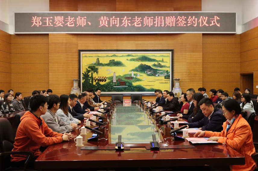 2024年11月22日上午,郑玉婴老师、黄向东老师捐赠签约仪式在旗山校区山南行政楼123会议室顺利举行。材料学院郑玉婴老师捐赠50万元设立“贤婴”基金、黄向东老师捐赠50万元设立“赛瑞特”奖学金,助力学校教育事业发展。成人网站 党委书记陈国龙、党政办公室主任王向阳、校友及基金会工作办公室副主任兰荣嵩出席捐赠签约仪式。仪式由材料学院党委书记罗涛主持。参加仪式的还有材料学院执行院长袁珮以及学院师生代表。