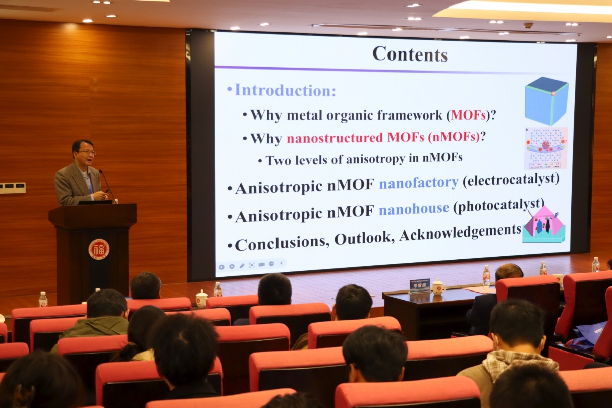 第六个报告来自华东师范大学/昆士兰大学余承忠教授,报告题目为“各向异性金属有机框架纳米材料”。余教授详细地介绍了各向异性金属有机框架纳米材料的设计制备及其应用,包括如何增加原子和纳米尺度的各向异性,以及这些材料在氧还原、氮还原等领域的应用。