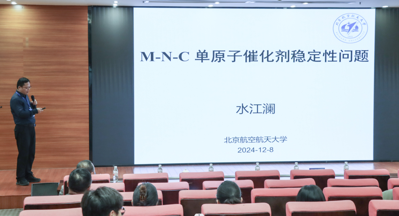 第五个报告来自北京航空航天大学的水江澜教授,报告题目为“M-N-C催化剂用于氢能存储与转化时稳定性问题”。水江澜教授介绍到M-N-C单原子催化剂对多种化学反应表现出高催化活性,然而其稳定性是个很复杂的问题,已有研究结果表明M-N-C的稳定性除了受自身金属种类和碳载体石墨化程度影响,反应环境是个重要的决定性因素。报告集中阐述了Ni-N-C、Fe-N-C在氢能存储和电化学能量转化应用中的稳定性问题。